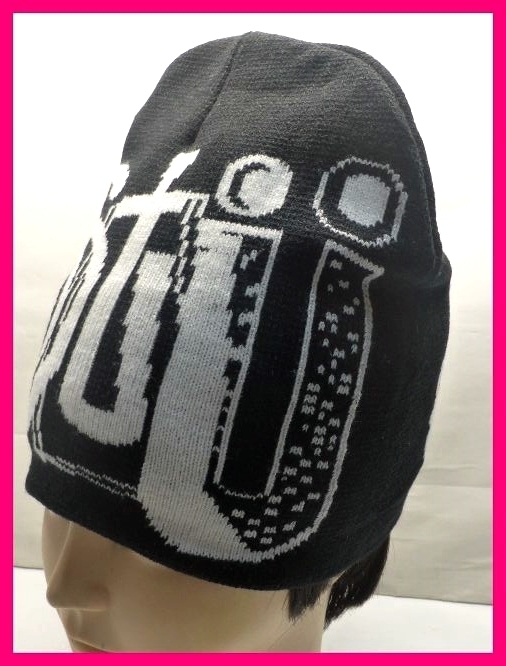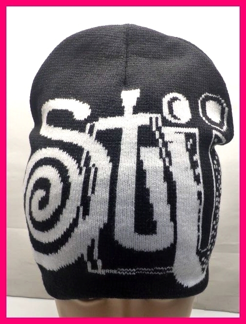 送料無料【新品】ステューシー・ビーニー帽 黒 フリーサイズ STUSSY「STU」ロゴ編込み変形フォントがカッコいい! ニットキャップ帽子