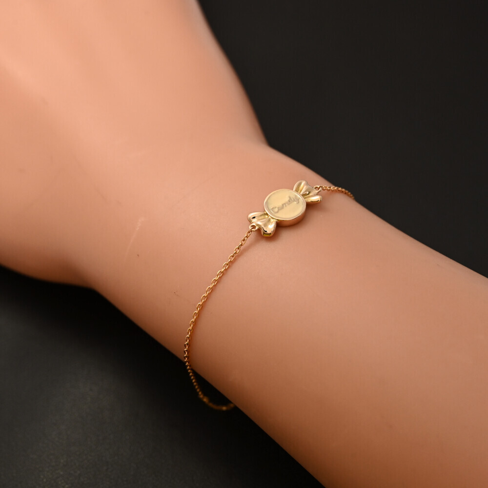 | 実寸サイズ | アイテム名:エナメルフィニッシュ モチーフ:キャンディモチーフ グラム:2.2g [サイズ(以下約)] トップサイズH:7.9 mm×W:17.5 mm×D:2.2 mm ブレスレット全長(着脱部含む):17.5 cm 腕周り:17 cm チェーン幅:0.7 mm アジャスター:無 ※当ストアはブランド品の不正商品排除を目的とした団体、「日本流通自主管理協会(AACD)」に加盟しております。(会員番号R-0143) |
