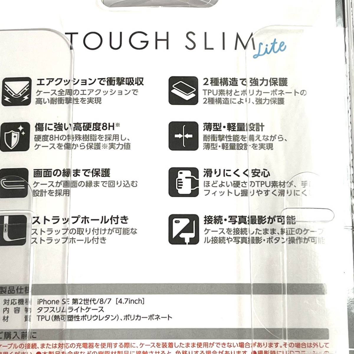 側面に弾力性のあるTPU素材を、背面に高硬度8Hのポリカーボネート素材を使用した、iPhone SE 第3世代、iPhone SE 第2世代、iPhone 8、iPhone 7用TOUGH SLIM LITEケースです。