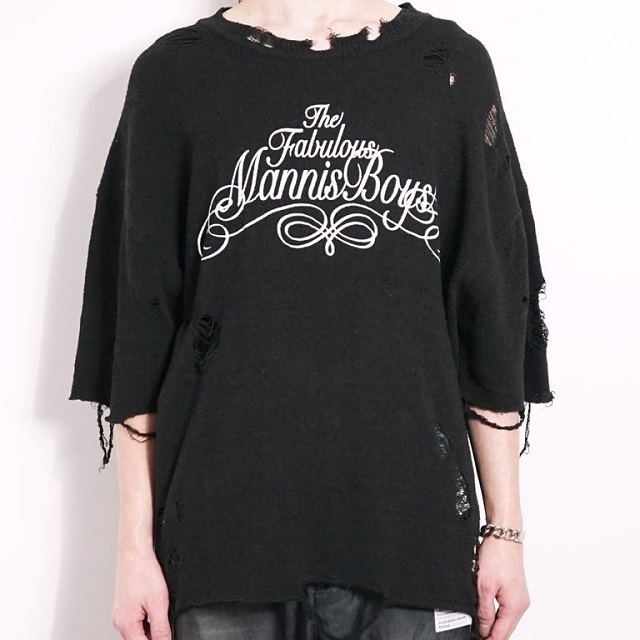 KAMIYA カミヤ 25SS Distressed Big Knit T-Shirt ダメージ加工プリントニットTシャツ G14TS074 BLACK デストロイ MAISON MIHARA YASUHIRO