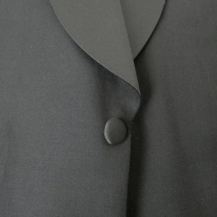 ノーベント。脇汗止め付き。デザインは落ち着きのあるショールカラー。