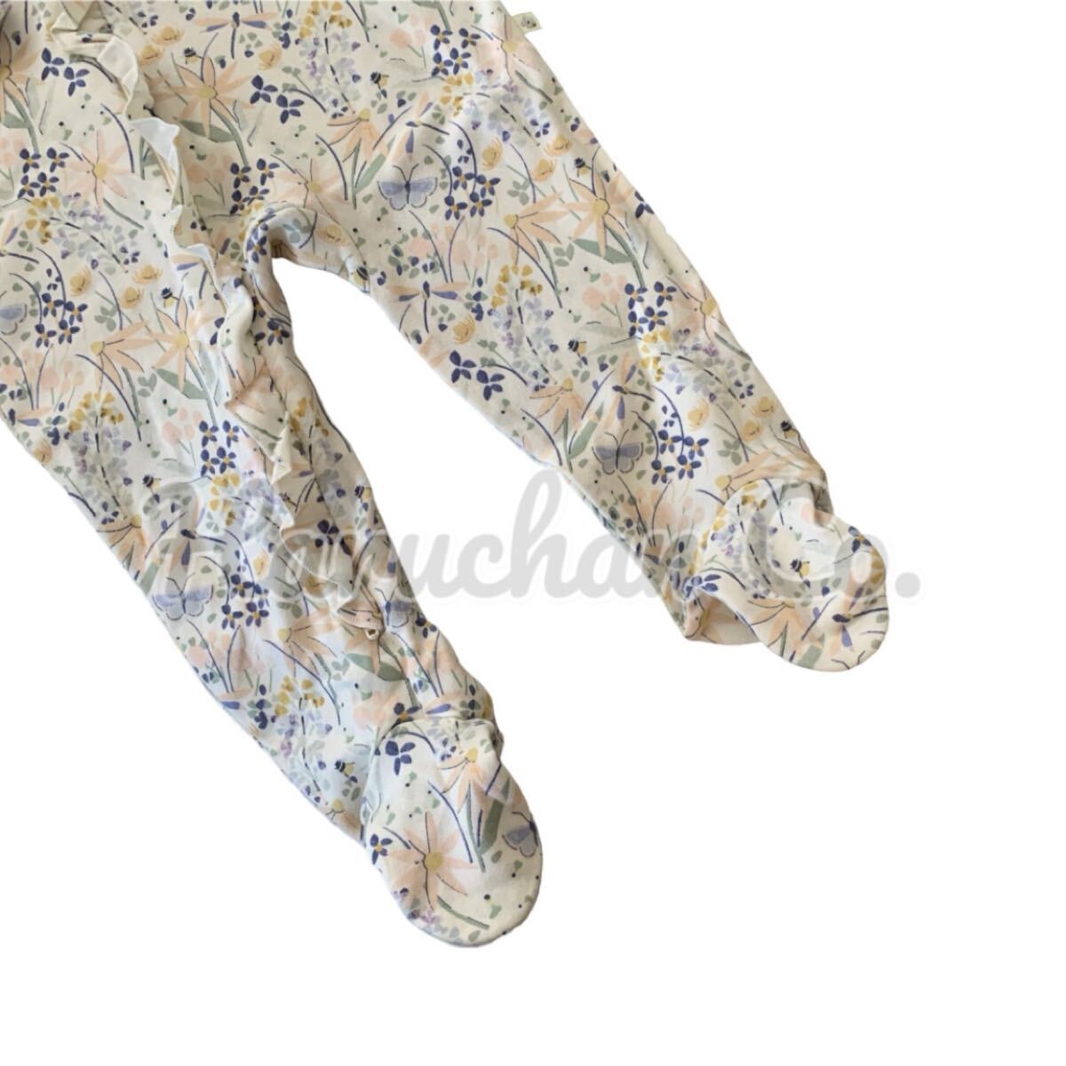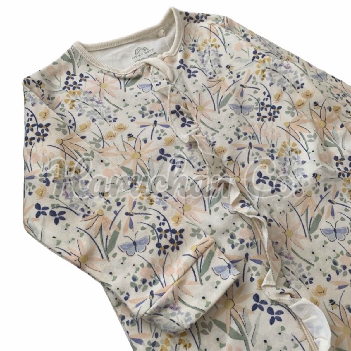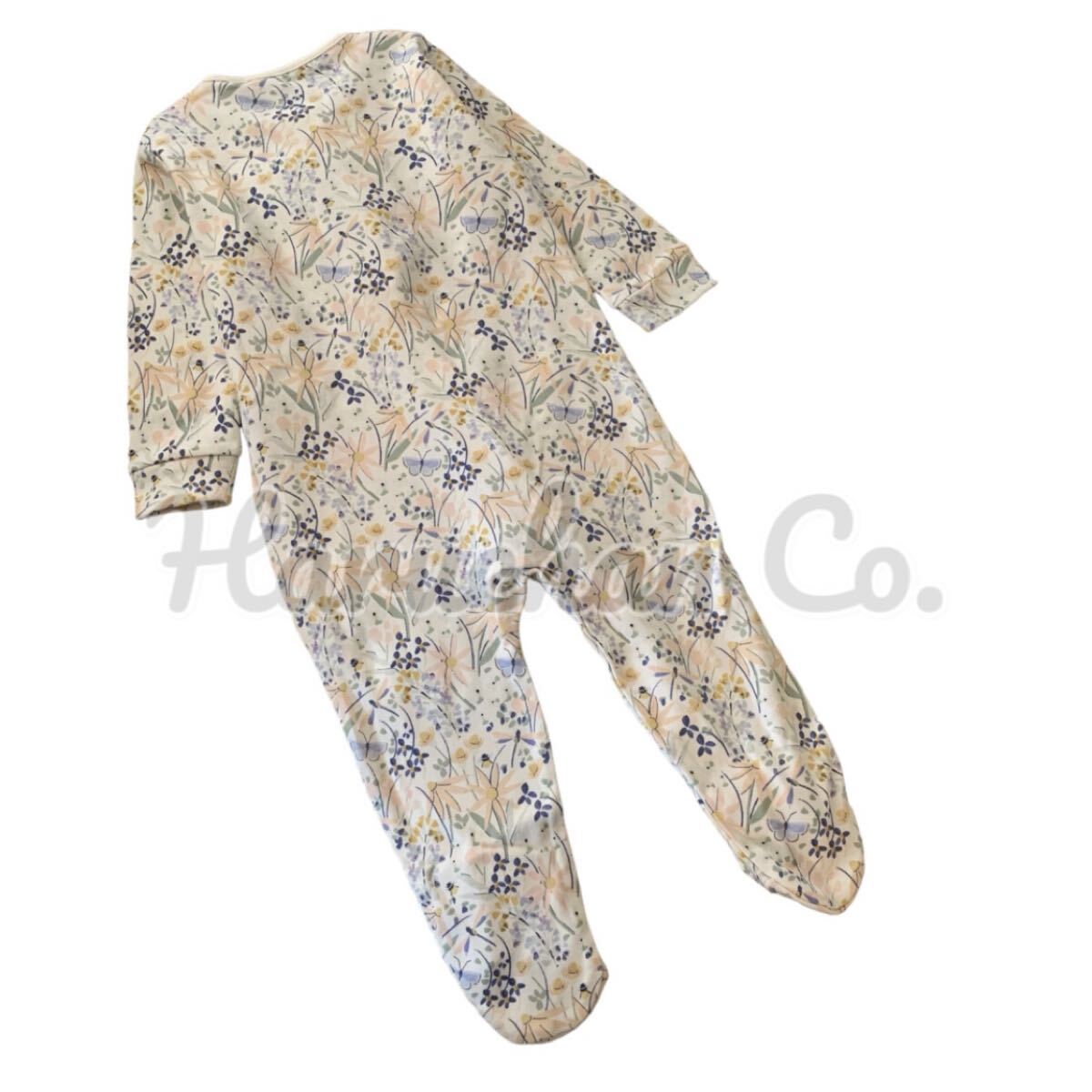ホワイトのボタニカル柄がおしゃれなカバーオール