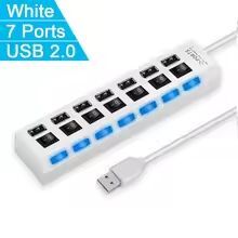 高速 7 ポート USB ハブ 2.0 アダプター ホワイト  送料無料