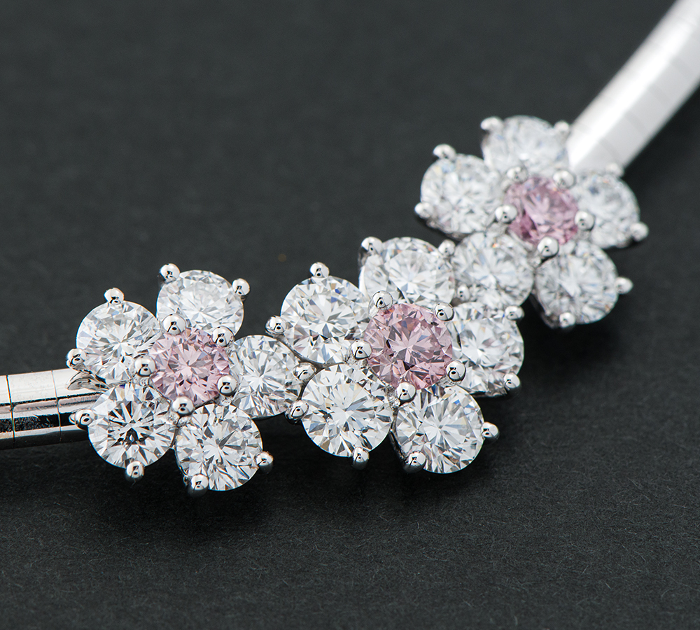 兵庫・芦屋発のジュエリーブランド ギメル。美しい自然をモチーフに、シンプルなデザインを最高の素材と高い技術で丁寧に仕上げるブランドの魅力が詰まったフラワーネックレスです。稀少なピンクダイヤモンドと計2ctアップの厳選したダイヤモンドを使用した贅沢なデザイン。素材選びから細部の仕上げに至るまで、ギメルならではの高いクラフトマンシップがうかがえる永く愛用できる逸品です。