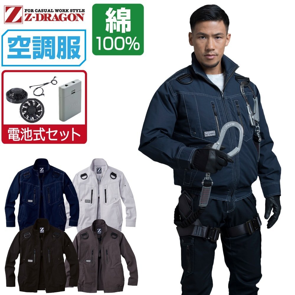 | 空調服説明 & 状態 & 素材 & サイズ & カラー 【画像参照】 | 届いてすぐにお使いいただけるおすすめセット商品! ■空調服 ≪説明≫ 綿100%素材ならではの自然な吸汗性とソフトな着心地が魅力。 Z-DRAGON新商品 75700のデザインをベースにしたフルハーネス対応空調服。 ≪状態≫ 新品・正規品 ≪素材≫ 綿100% ポプリン ≪特徴≫ ・調整ヒモ ・左袖ペン差し ・安全帯フックかけカン ・ランヤード取付口 ・ファン脱落防止用メッシュ ・左内側バッテリーポケット ・金属ボタン ・金属ファスナー ≪サイズ≫ タイトル名【 画像参照 】 ≪カラー≫ タイトル名【 画像参照 】 | セット 内容 | ■電池ボックス ≪内容≫ ・電池ボックス×1 出力:強(4.8V)、弱(2.4V)(2段階) 外寸:W65mm・D19mm・H85mm 連続使用時間 強(4.8V)設定時:約4時間 弱(2.4V)設定時:約16時間 エネループ2000mAh(単三4本)を使用した場合 ■ファンセット ≪カラー≫ タイトル名【 画像参照 】 ≪内容≫ ・ファン×2 ・ケーブル×1 ■:本商品の【 サイズ・カラー 一覧(服単品) 】 ■:本商品の【 フルセット(服+バッテリー+ファン) 】 ■:本商品の【 電池式セット(服+電池ボックス+ファン) 】 ■:本商品の【 ファンセット(服+ファン) 】 ■:本商品の【 備品 一覧 】 □:綿100% 空調服 一覧 □:ポリエステル100% 空調服 一覧 □:フルハーネス 空調服 一覧 |