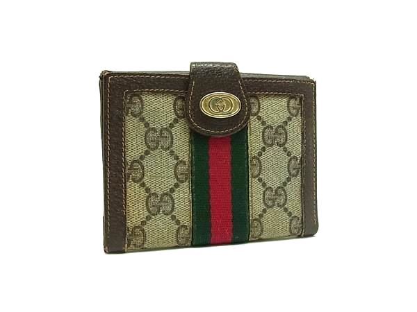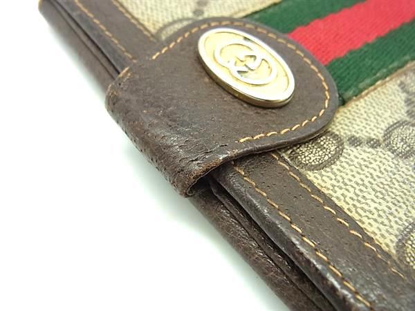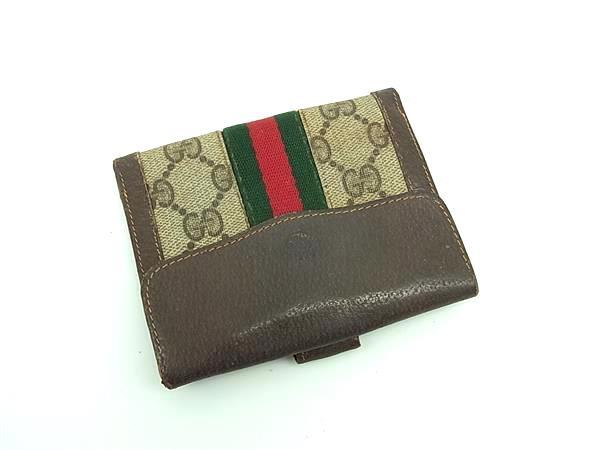 GUCCI オールドグッチ ヴィンテージ シェリーライン GG柄 PVC×レザー 二つ折り 財布 ウォレット レディース メンズ ブラウン系 DJ6207