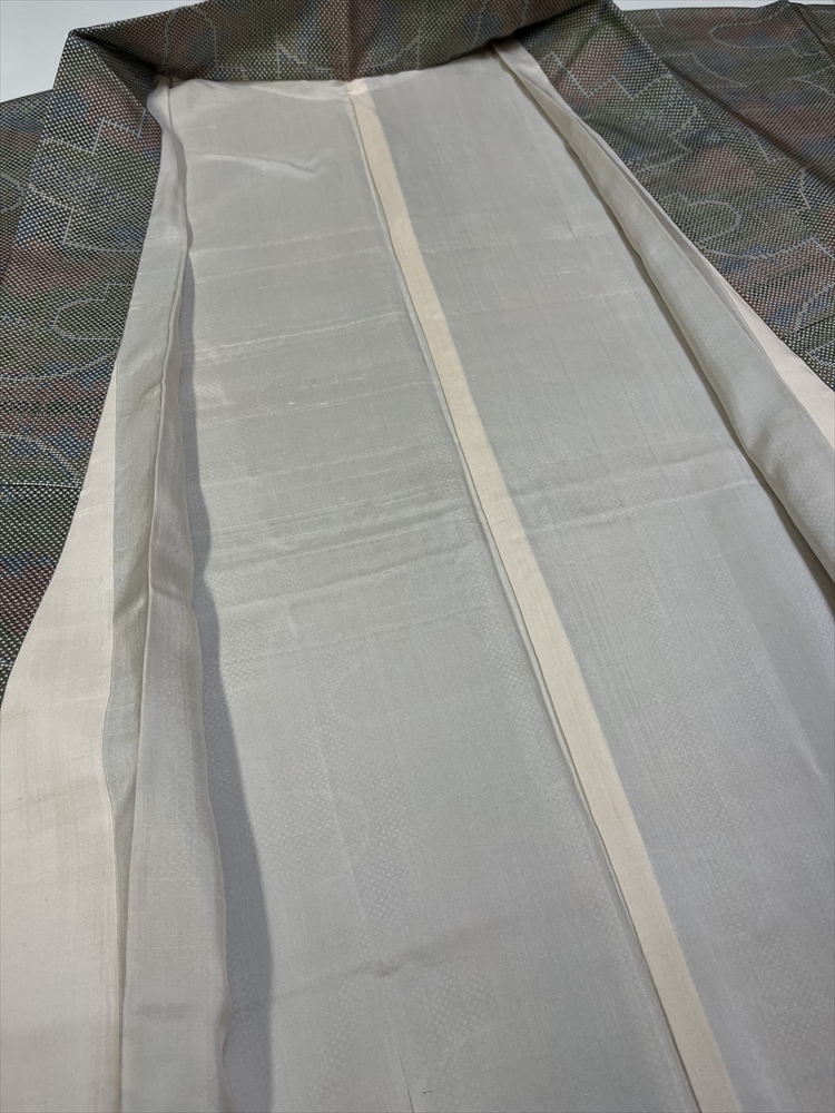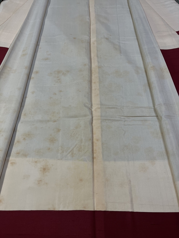 バチ衿の仕立てです。胴裏の黄ばみシミがキツメです。
