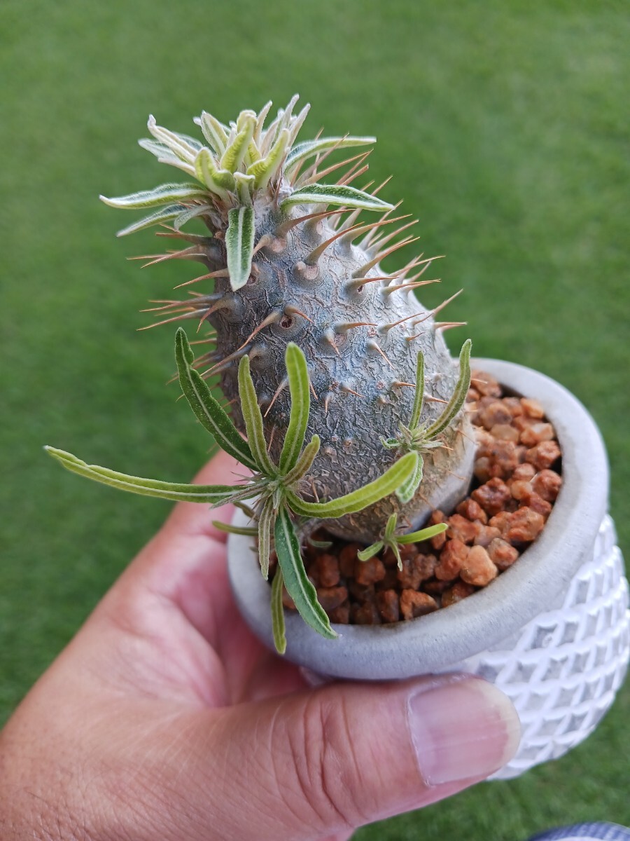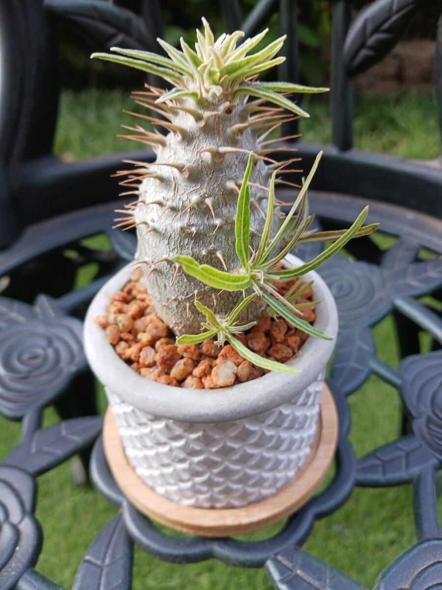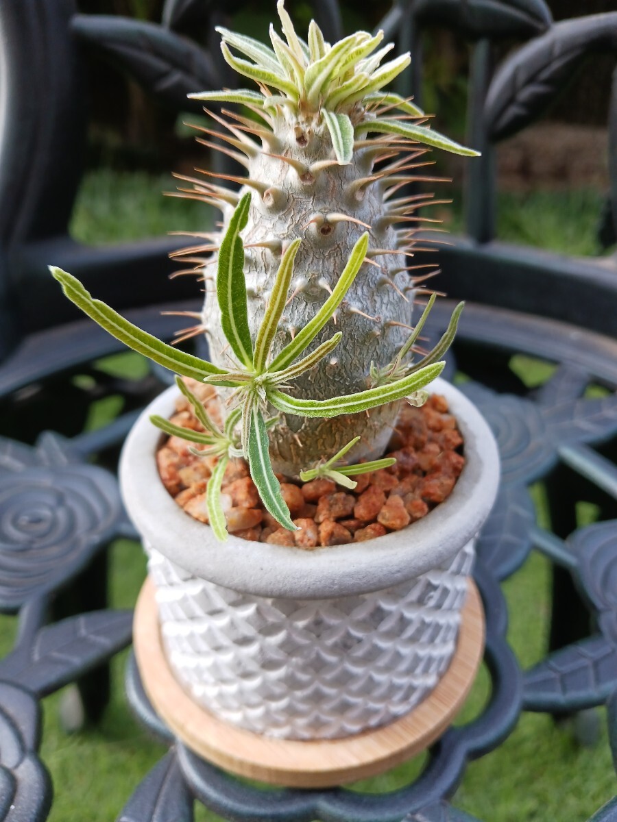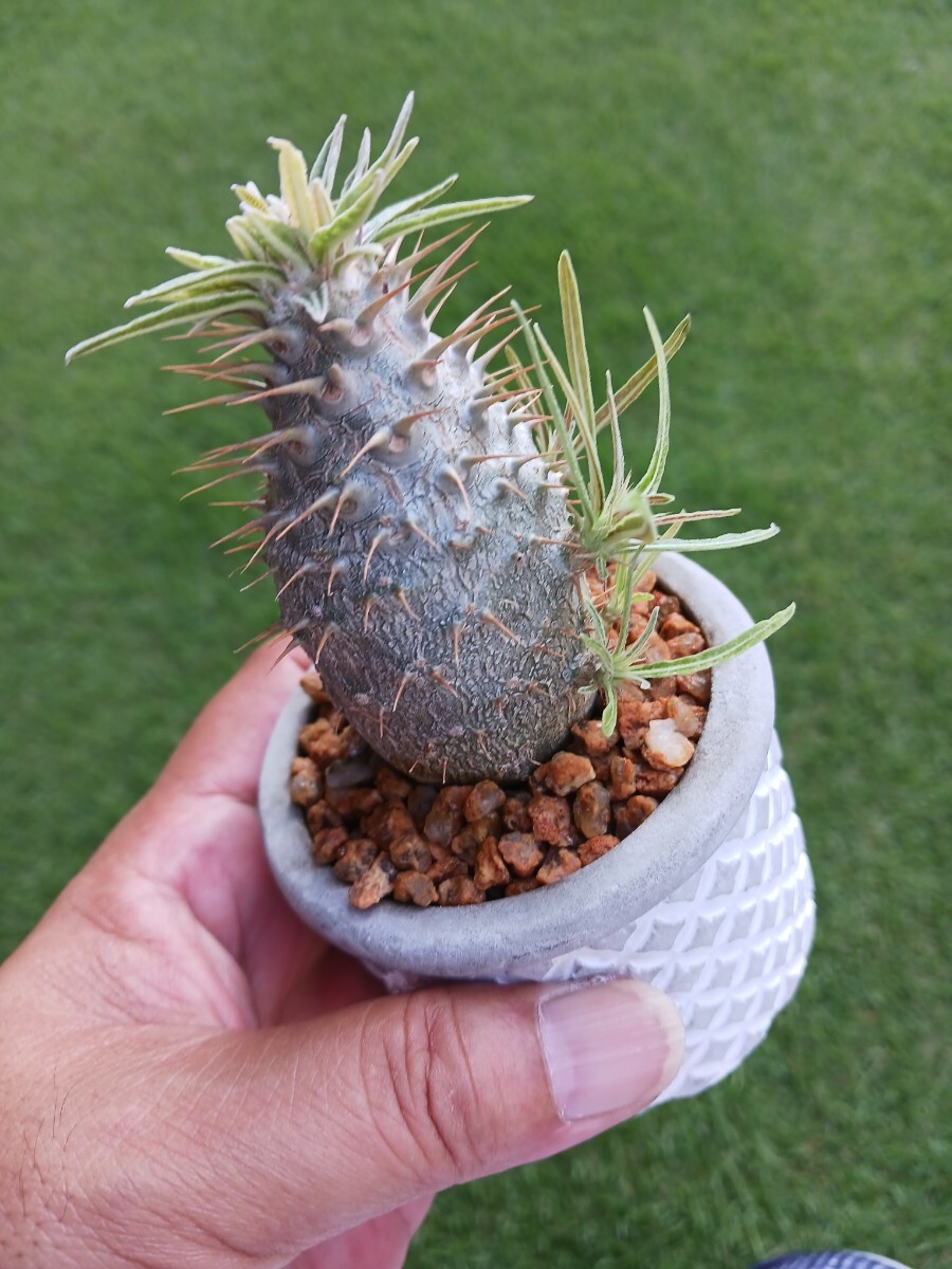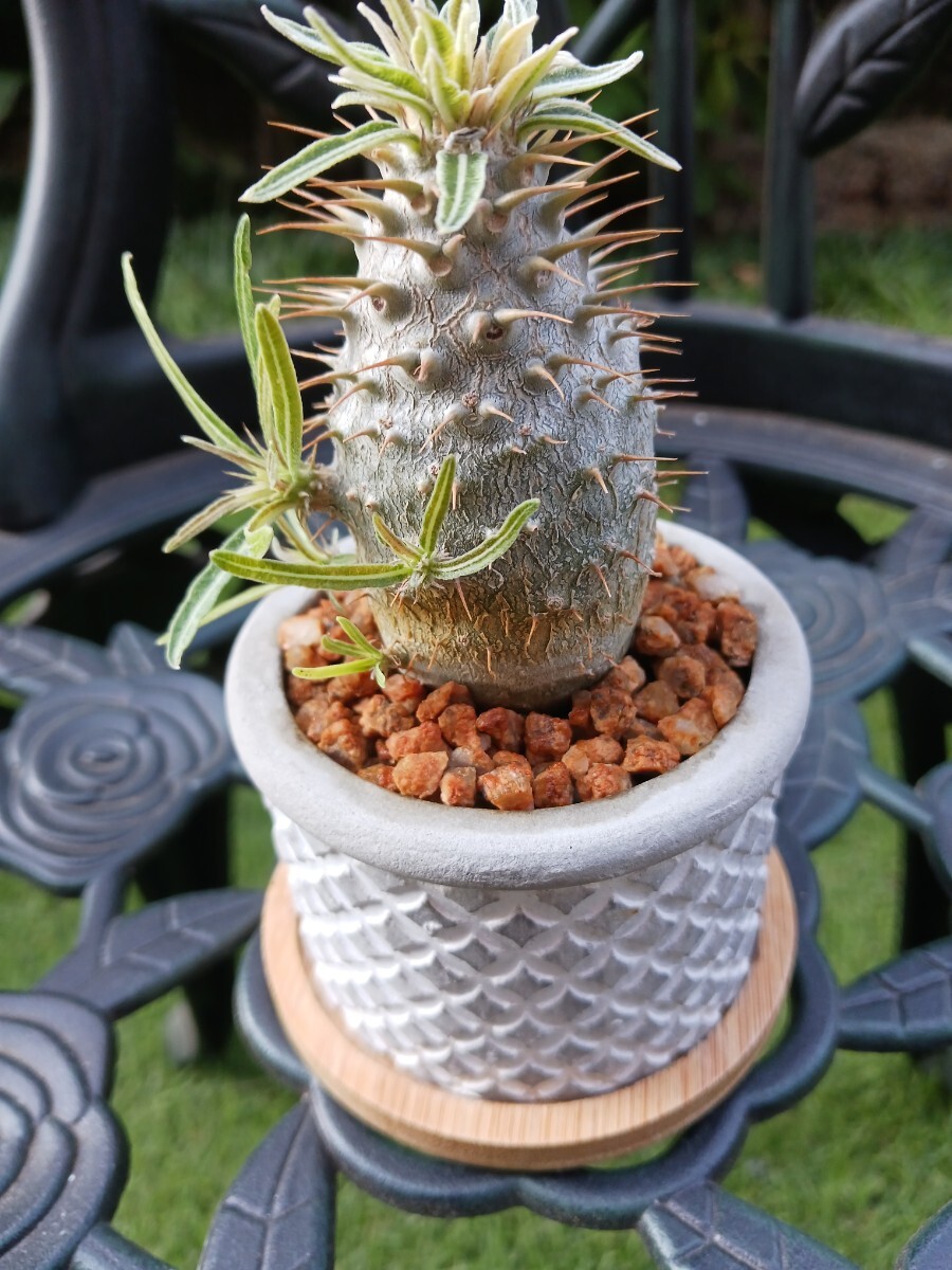 鉢のサイズ、高さ58ミリ、直径75ミリのセメント鉢に植えて管理しています。