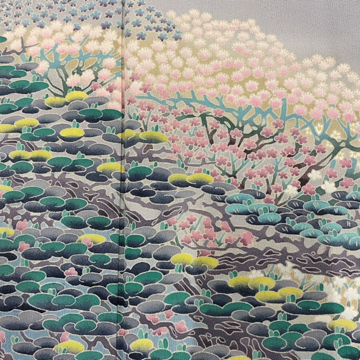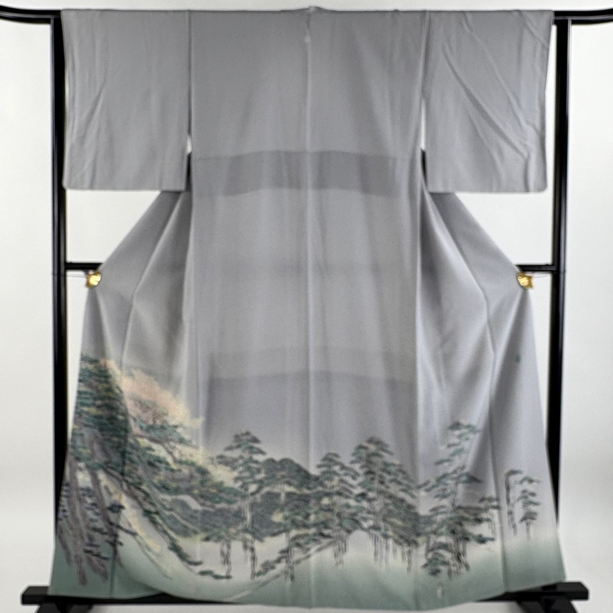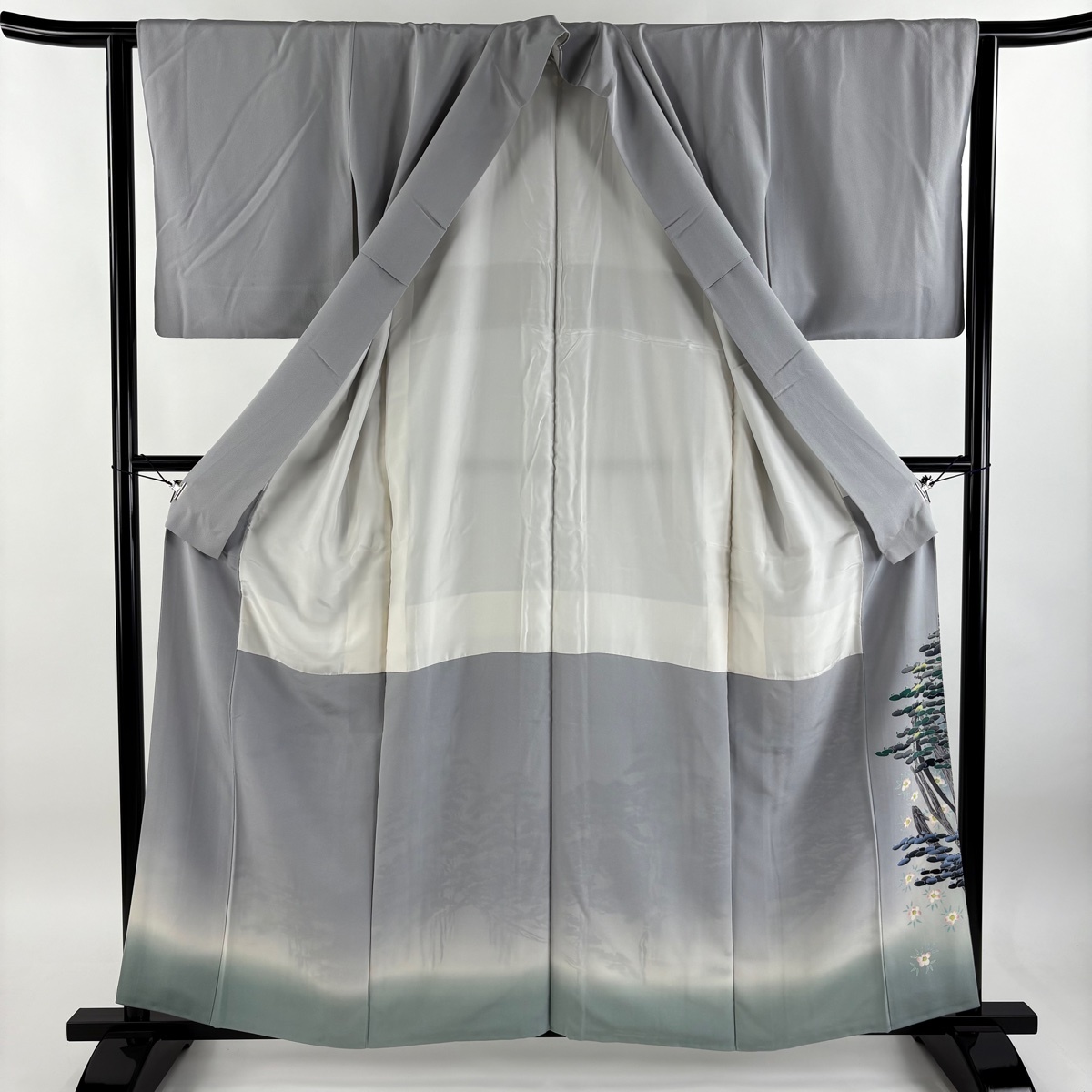 | 色留袖 名品 落款 鈴乃屋 松 枝花 ぼかし 灰色 袷 身丈156.5 裄丈63 S 正絹 【中古】 |