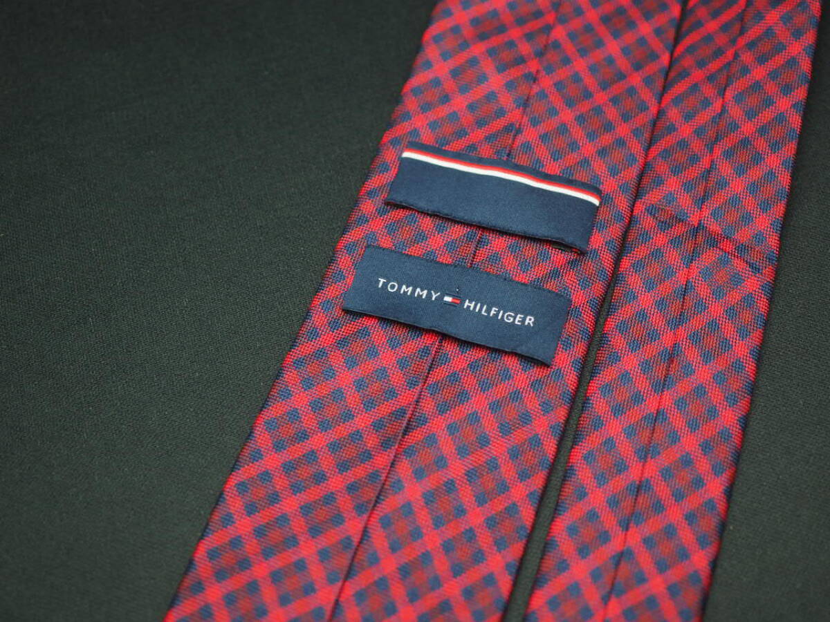 美品【TOMMY HILFIGER トミーヒルフィガー】 F1700 赤ネイビー系 SILK ブランド ネクタイ 古着 良品