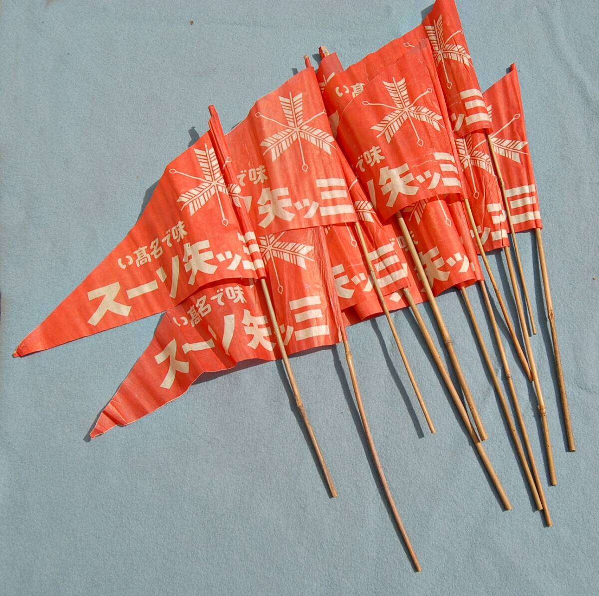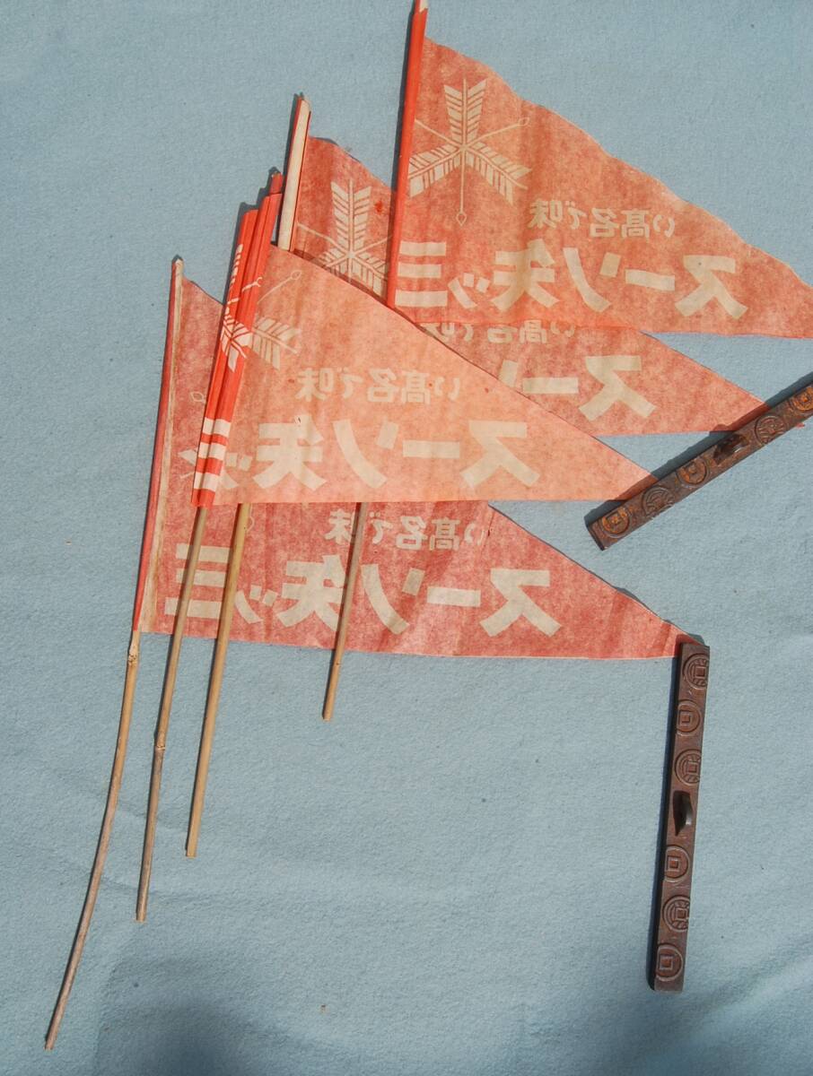 昭和初期位の販促品です。子供が左右に振って遊ぶ薄い紙製の手旗です。