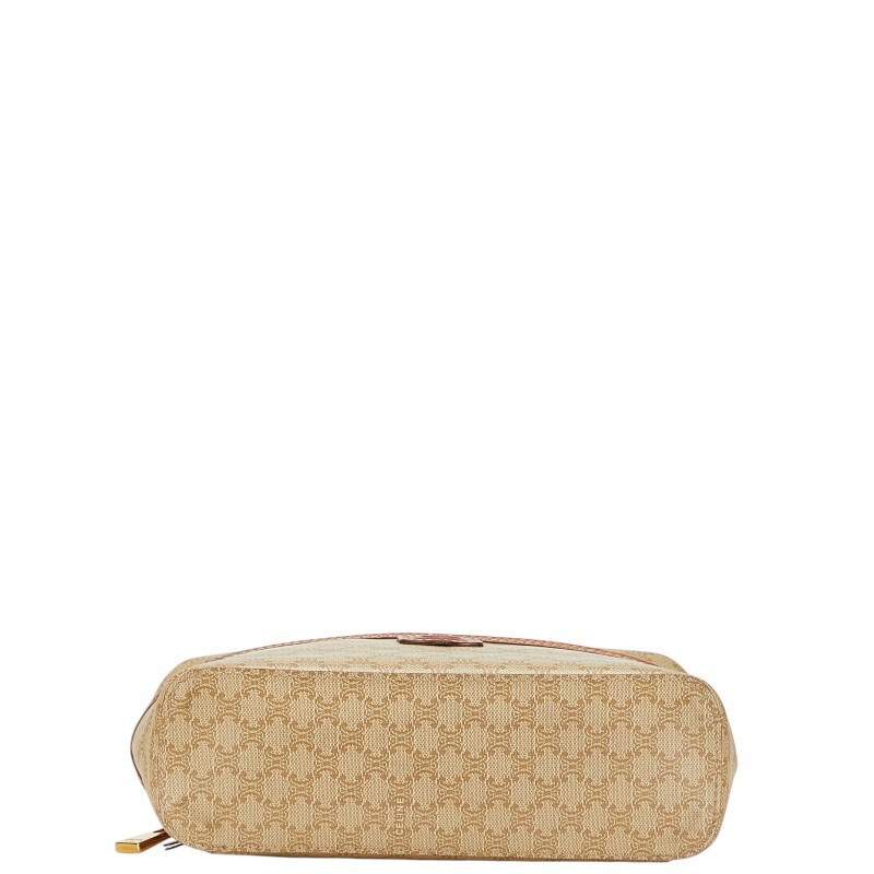 セリーヌ マカダム バニティバッグ ベージュ ブラウン PVC レザー レディース CELINE 【中古】