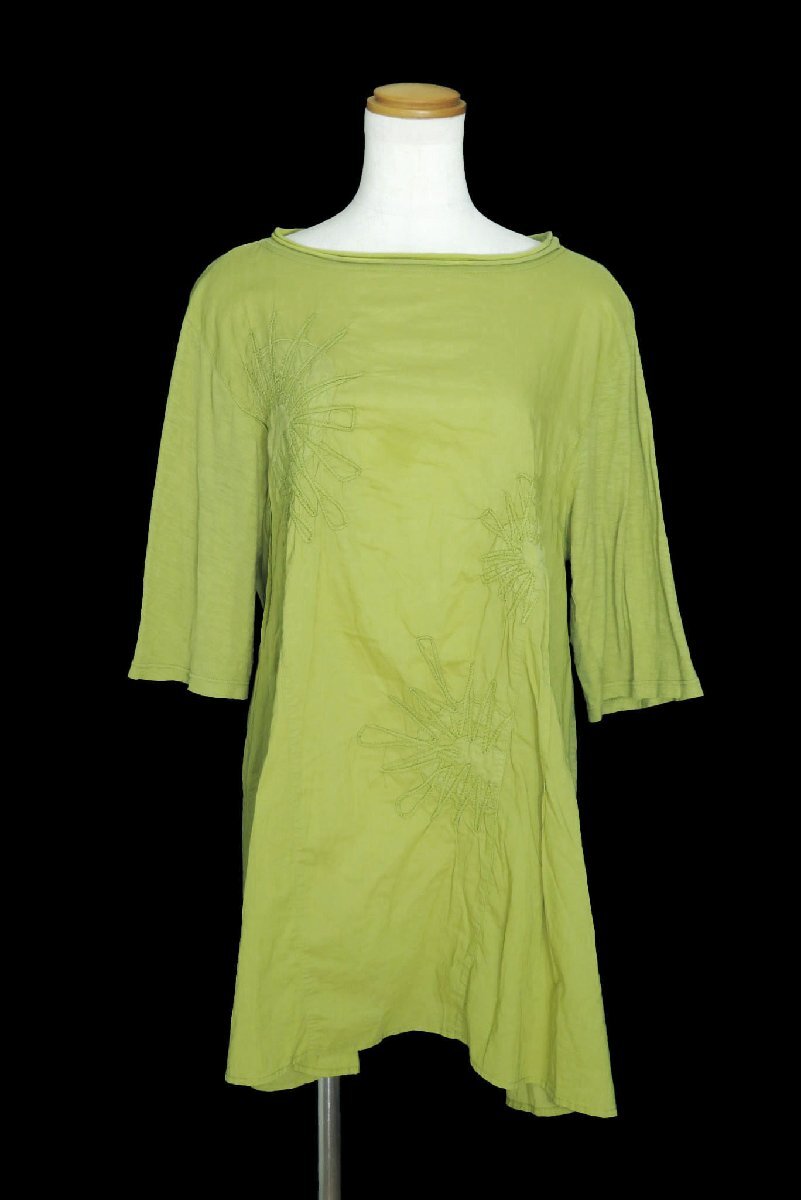 ☆美品2021☆イオコムイオ/センソユニコ/洗えるコットンコード刺繍5分袖チュニック:38nl737