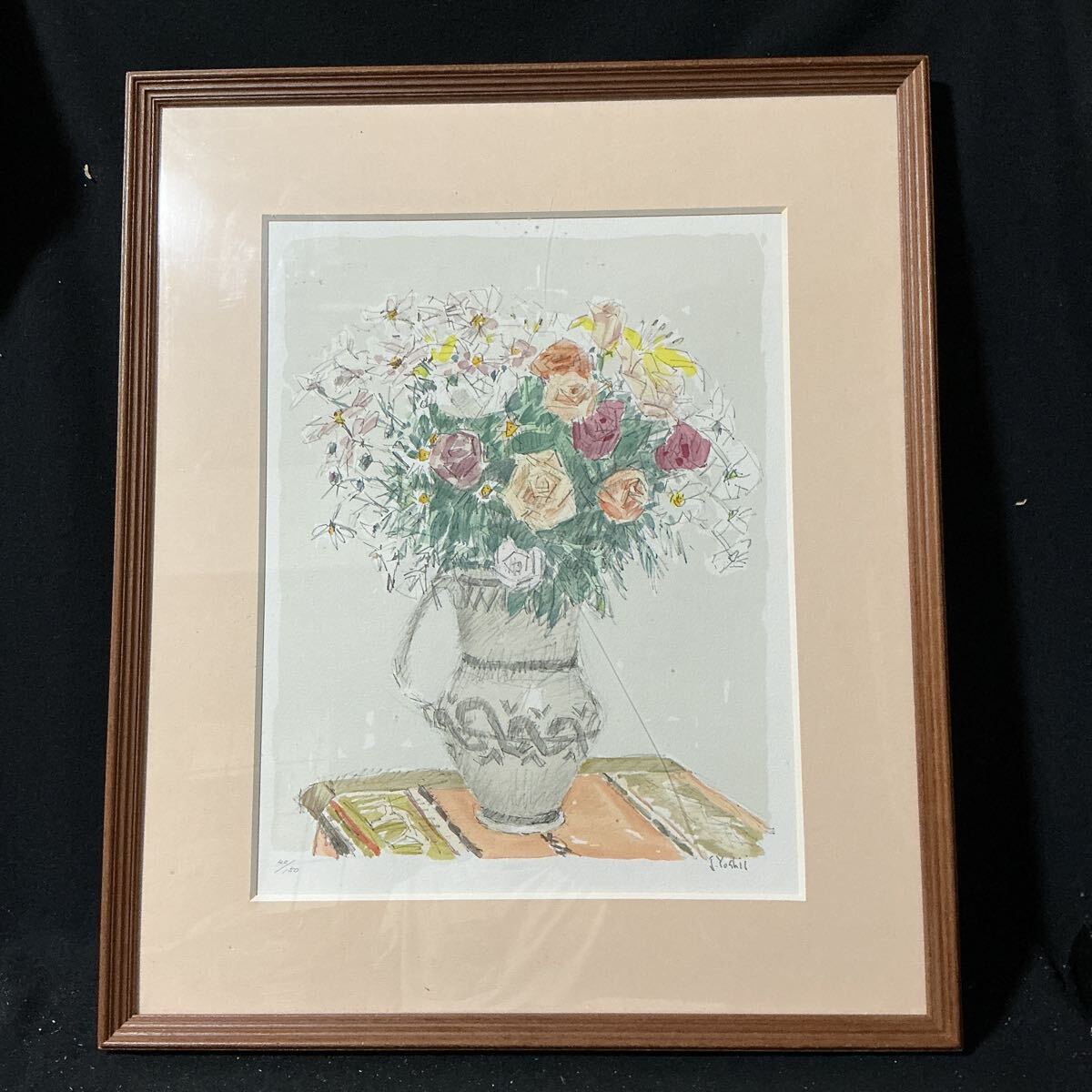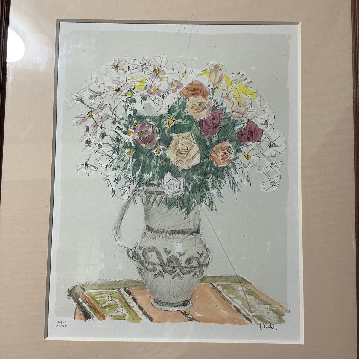 【真作】吉井淳二 リトグラフ 「花」 直筆サイン