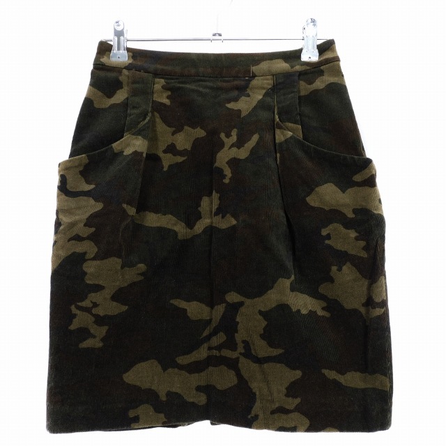 B&Y ユナイテッドアローズ コーデュロイ タイトスカート ミニ タック バックファスナー コットン カモフラ 迷彩柄 S 茶 ブラウン ボトムス /T2 レディース