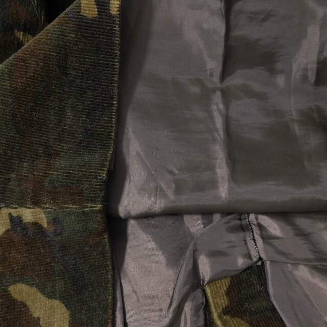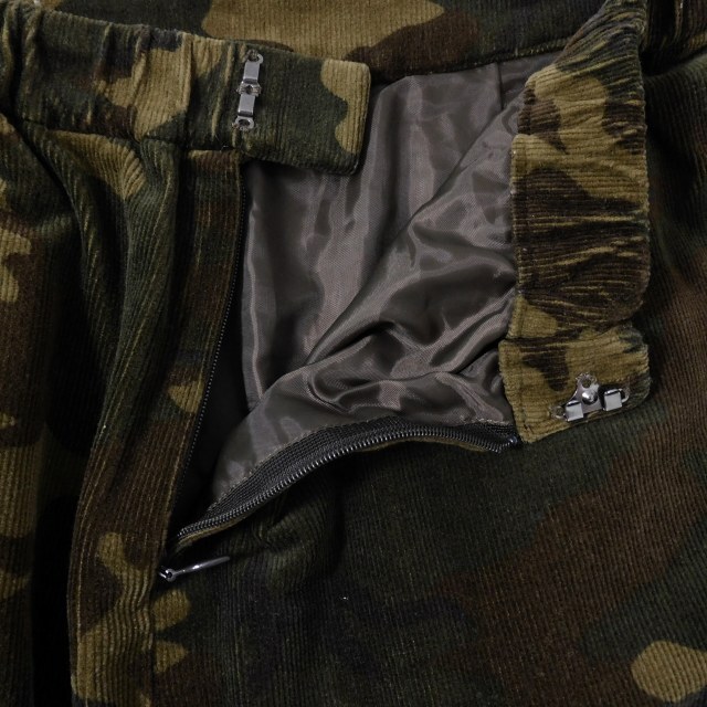 【仕様】生地感 やや厚手 開閉 バックファスナー ポケット×2 裏地 あり 伸縮性 あり 透け感 なし 柄 迷彩柄 カモフラ