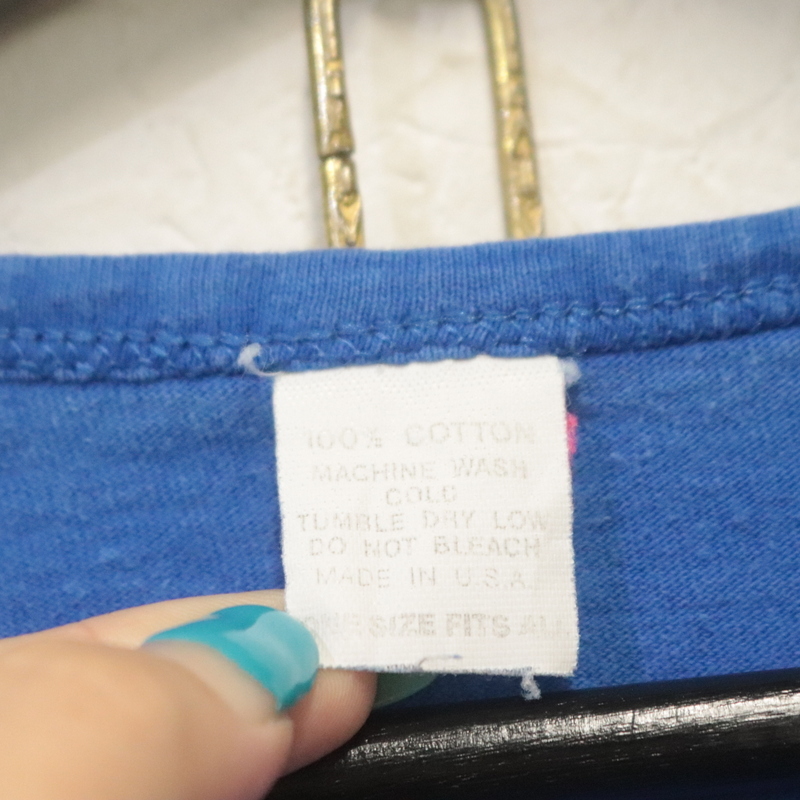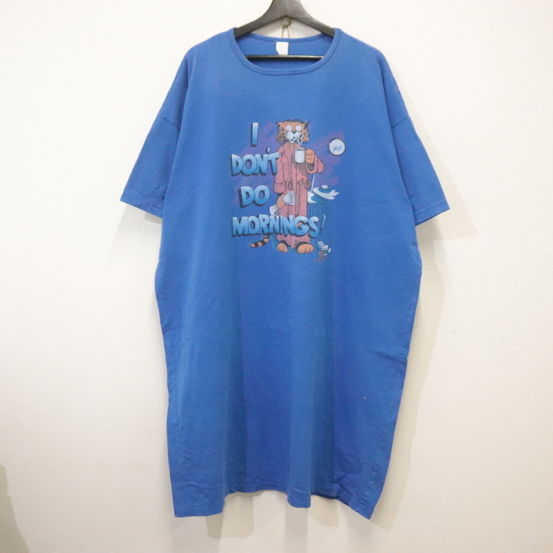 商品名 T75 80sビンテージ Tシャツワンピース USA製■1980年代製 約XLサイズ レディース ブルー 青 アメカジ アニマル メッセージ 古着卸 古着 90s