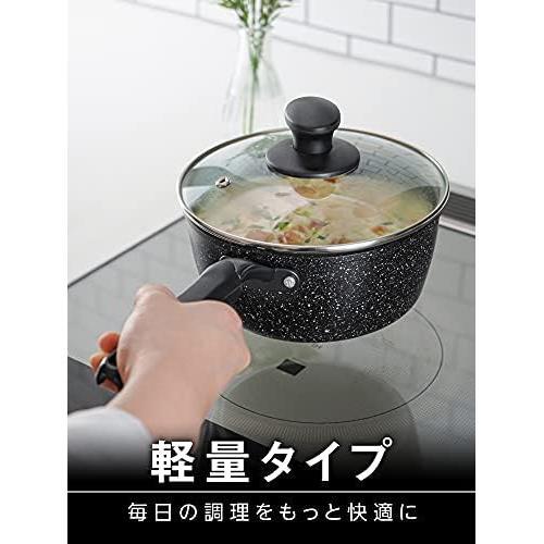 本体:アルミニウム合金、内面:ふっ素樹脂加工、外面:焼付塗装、はり底:ステンレス鋼、ガラス蓋:強化ガラス