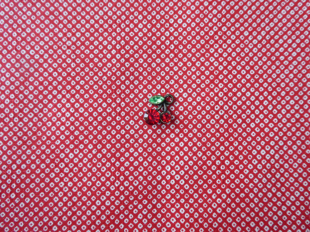 即決★レアはなちゃん小紋絞り柄生地レッド★昭和レトロ和柄 文化人形宇山女の子赤 |