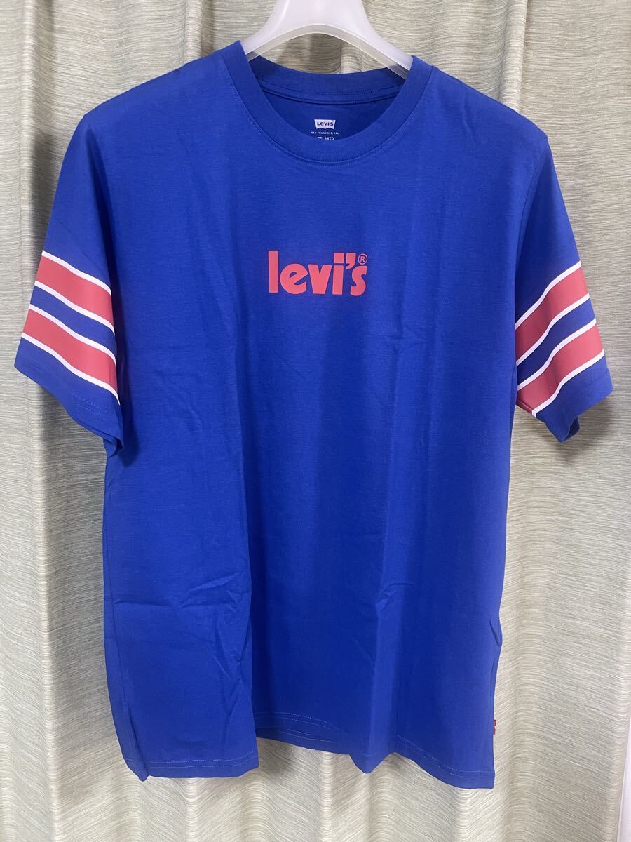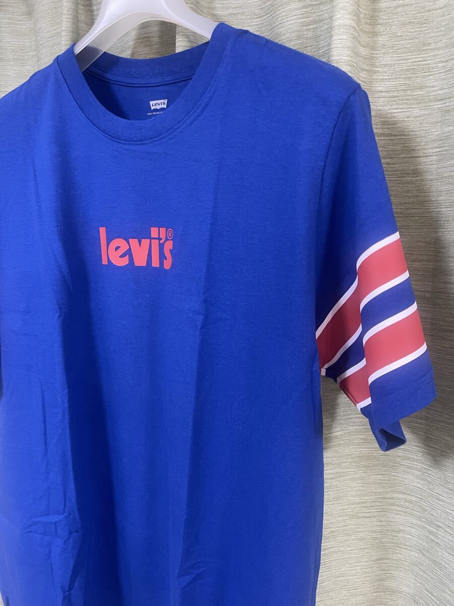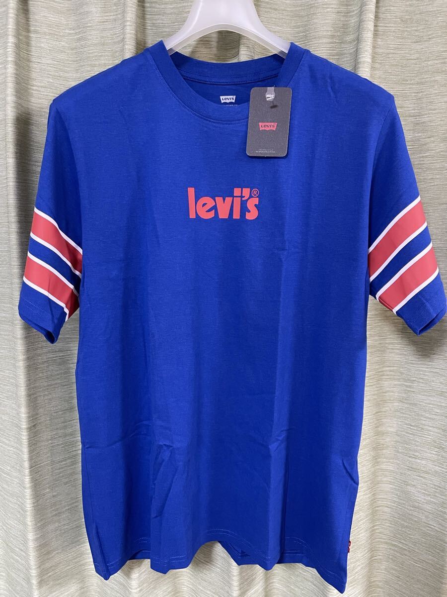 新品未使用 Levi's リーバイス 青 M Tシャツ 腕ストライプ サイズM 半袖Tシャツ 半袖 Tシャツ ネイビー