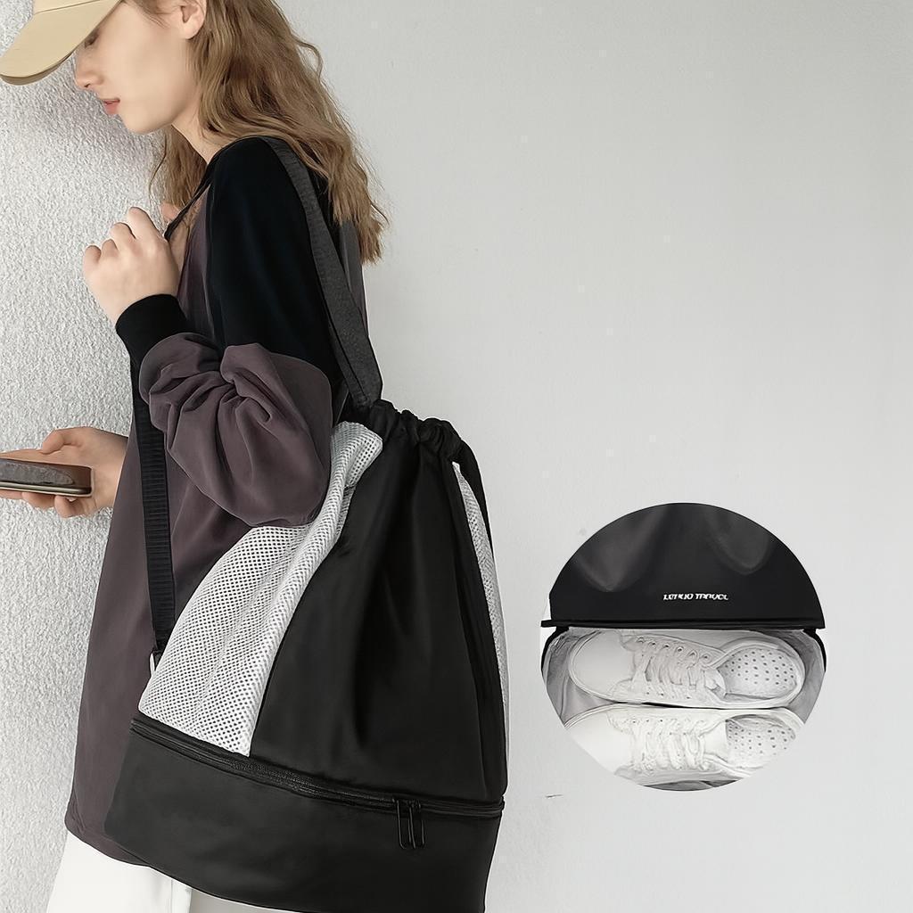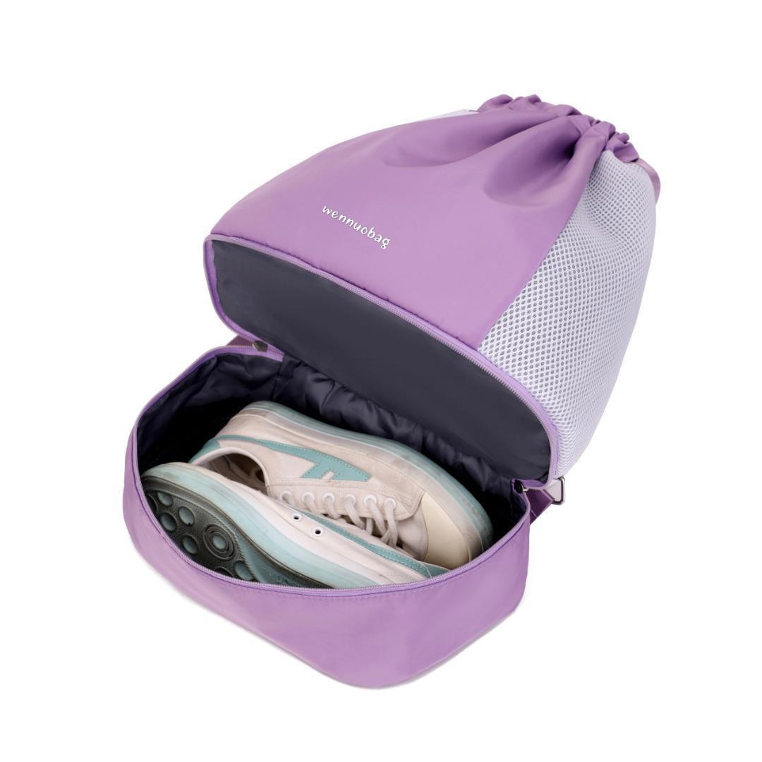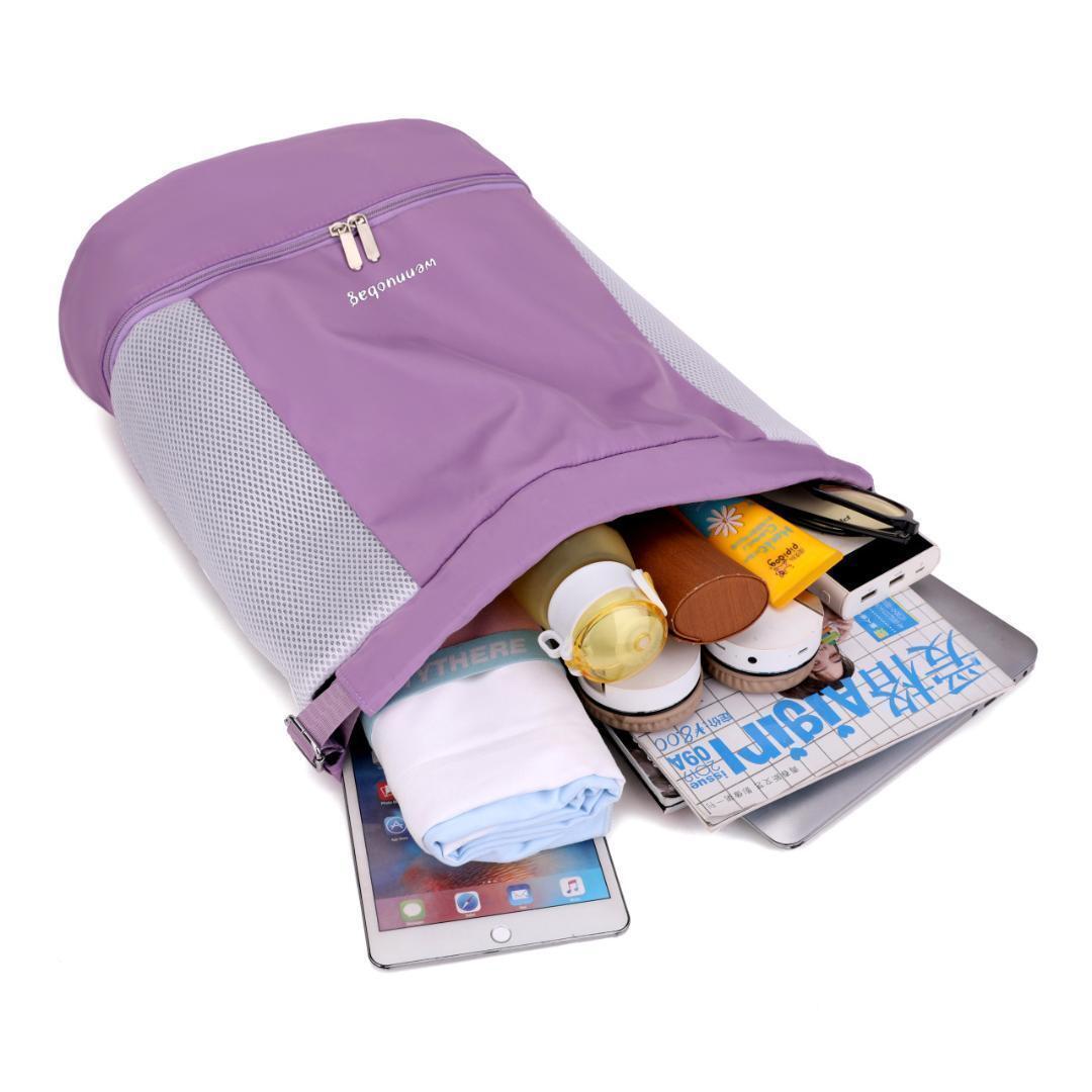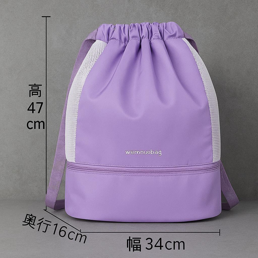 上部の紐を引っ張ればリュックとして背負うことができ、持ち運びもラクラク。