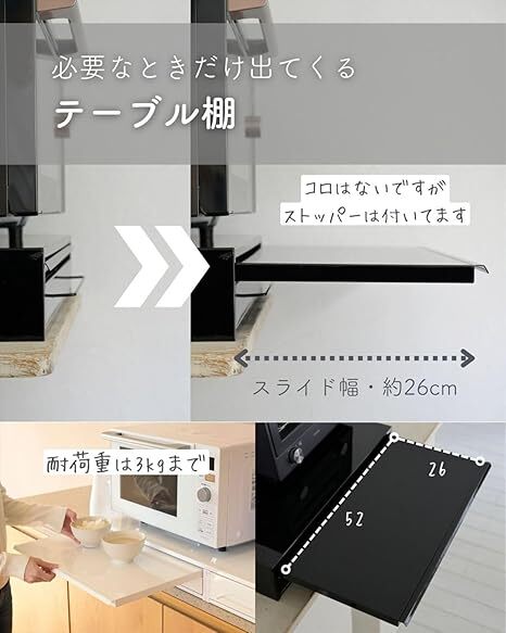 ●スライド棚: 幅52 奥行26cm、耐荷重3kg