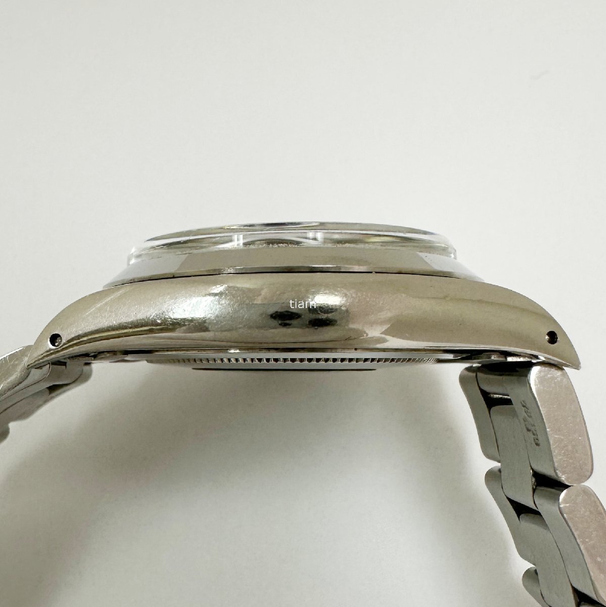 | ガラス: 表面傷がございます。 ダイヤル/針: 汚れが少々、インデックスと針に変色がございます。 ケース/ベゼル: 薄小傷が多くございます。 ブレス: 小傷が多くございます。 その他: | ||