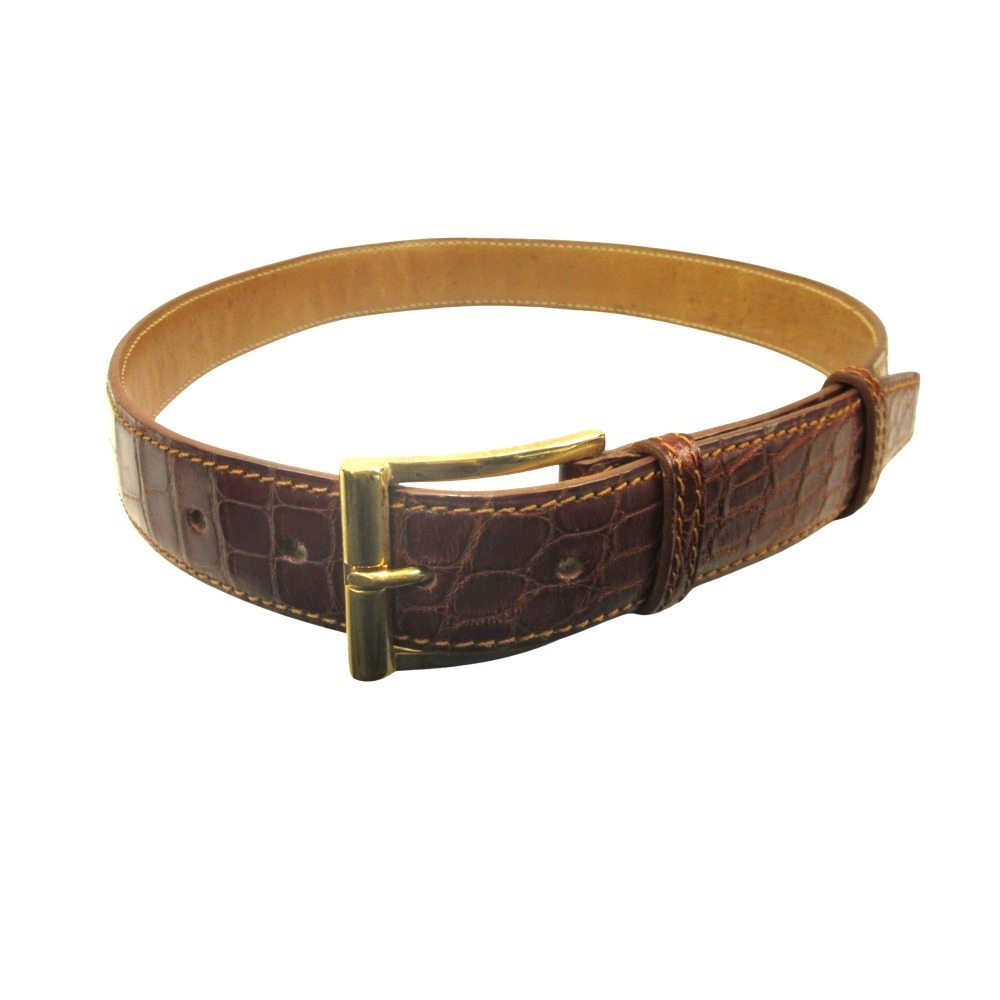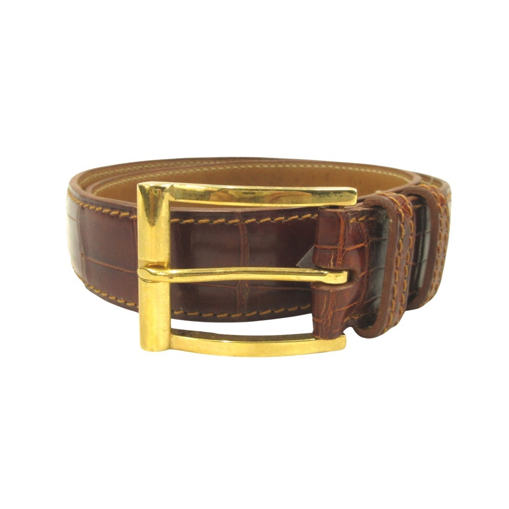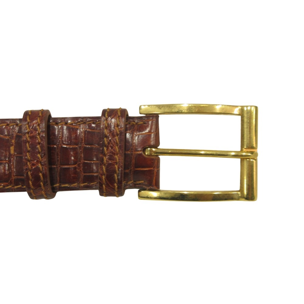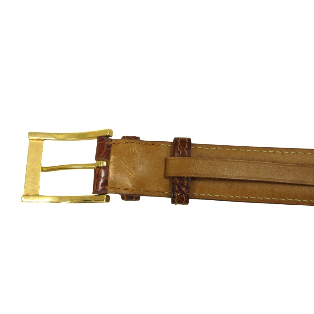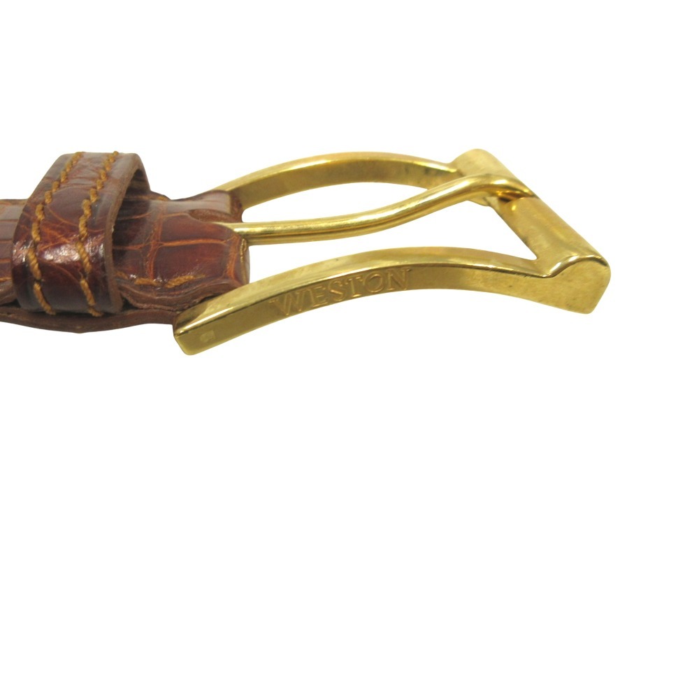 J.M. WESTON ジェイエムウエストン クロコダイル レザー ベルト バックル ワニ革 アリゲーター #75 茶 ブラウン ゴールド