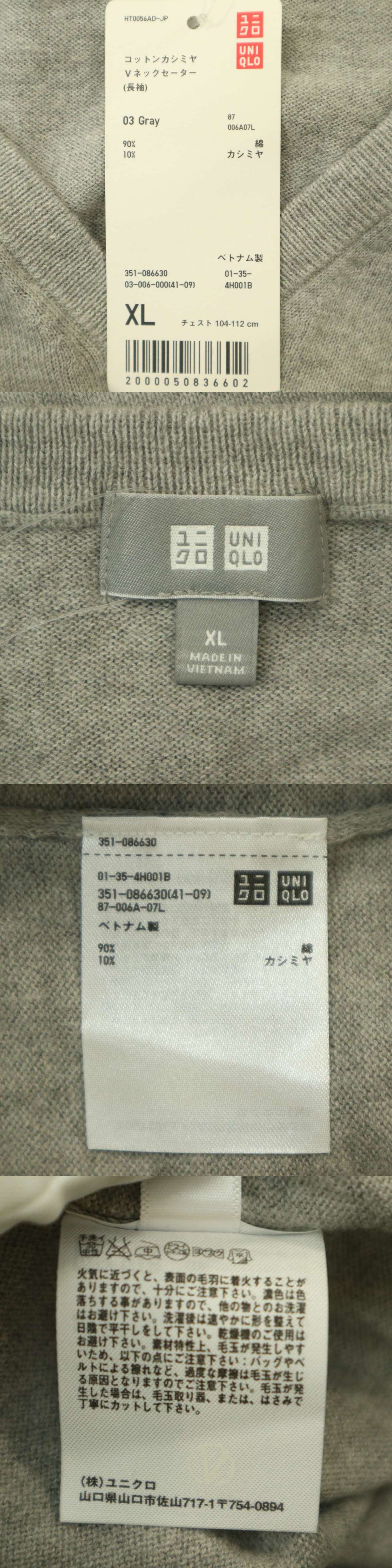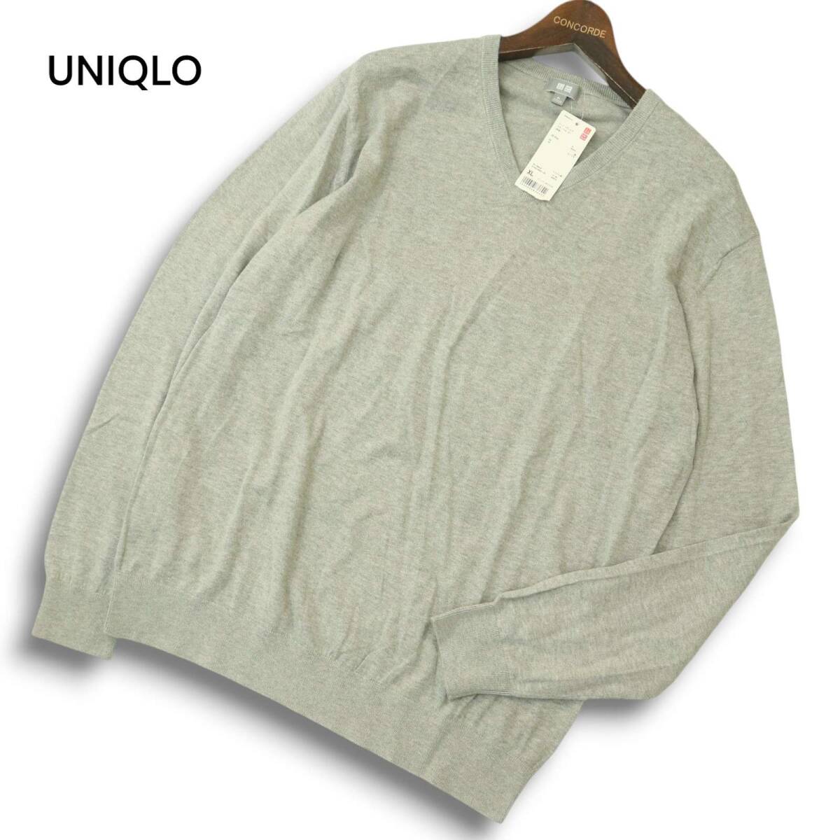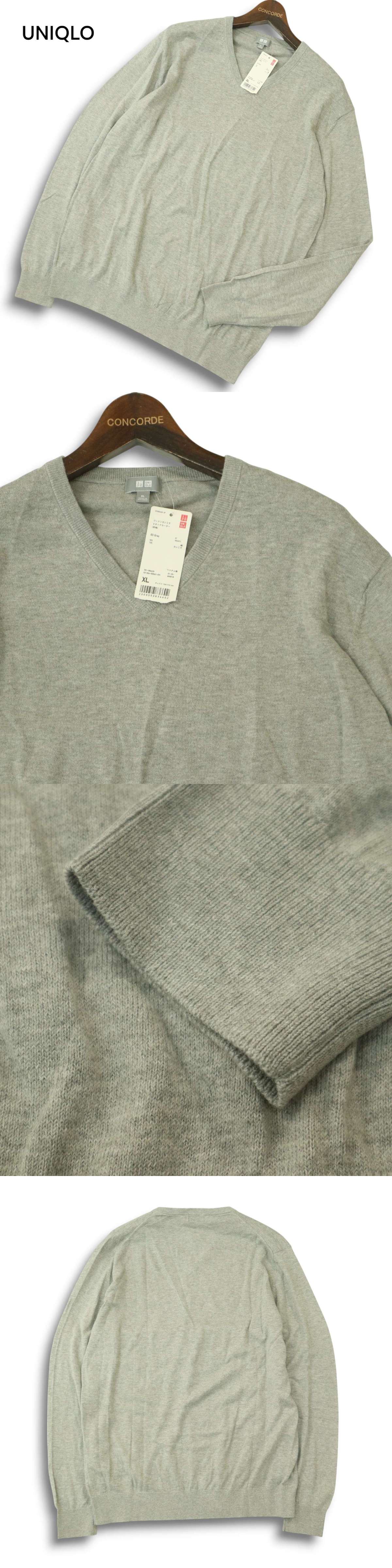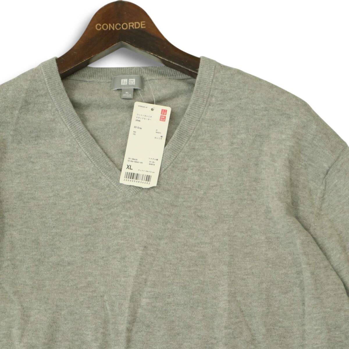 【新品 未使用】 UNIQLO ユニクロ 秋冬 コットン カシミヤ Vネック セーター ニット Sz.XL メンズ グレー 大きいサイズ