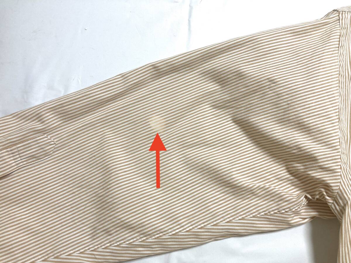 コンディション:右ムネ(写真4枚目)左袖(写真5枚目)左袖のカフス部分に(写真6枚目)色抜け、右サイドに若干のシミ(写真6枚目)、などのダメージが有ります。それぞれあらかじめご了承ください。それ以外、全体的には着用感はありますが、着用に支障の有るダメージ等は無く、中くらいだと思います。中古に理解の有る方のみ入札して下さい。