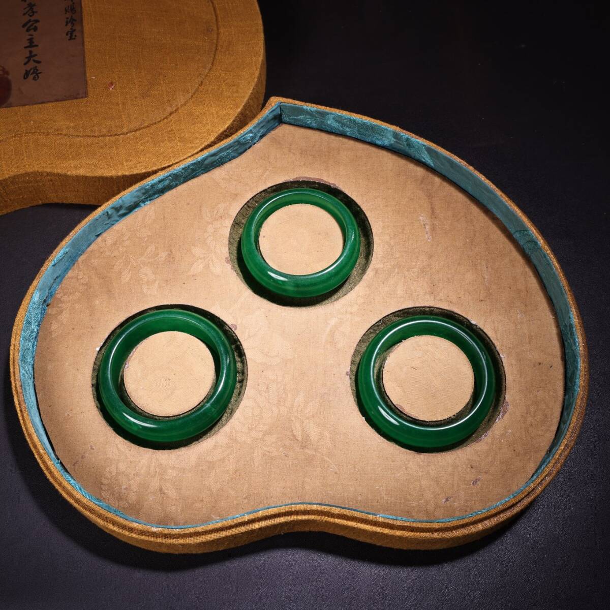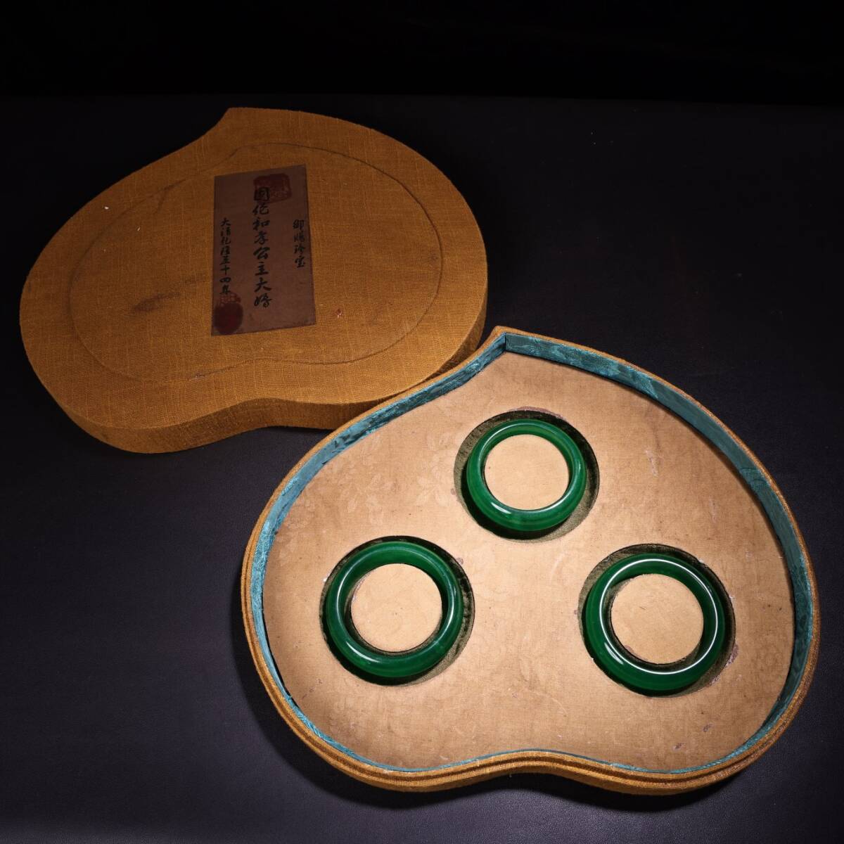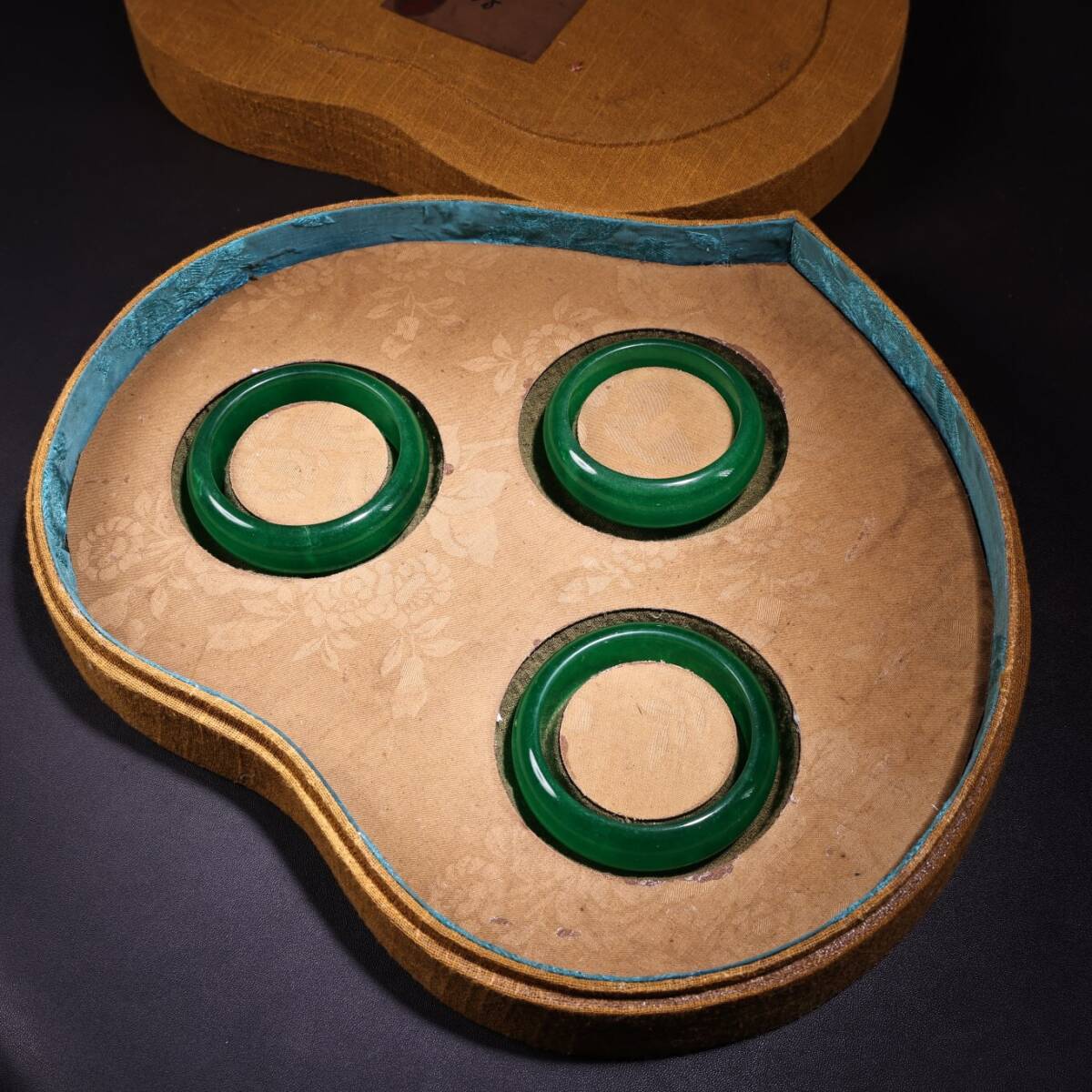 ▽鴻▽ 翡翠製 細密彫 腕輪 箱付 根付 裝身具 古賞物 古董品 時代物 稀少珍品 中国古玩 中国古美術