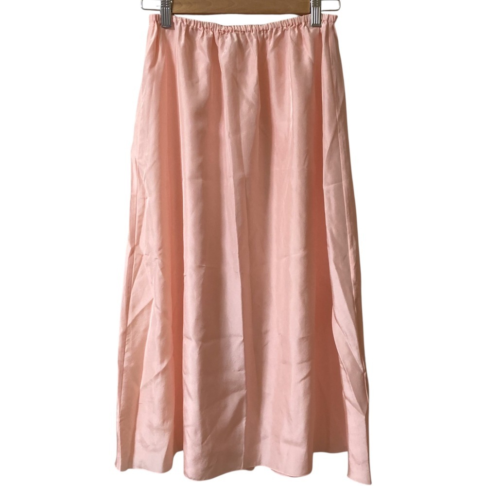 商品名:BLAMINK ブラミンク シルク イージーウエスト ロングフレアスカート 36 ピンク