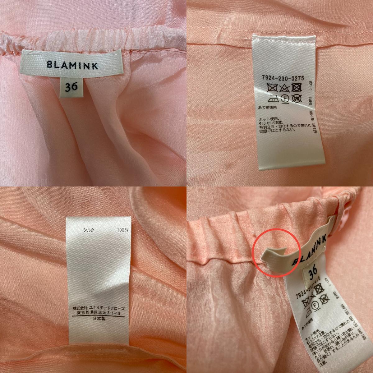 良品 BLAMINK ブラミンク シルク イージーウエスト ロングフレアスカート 36 ピンク