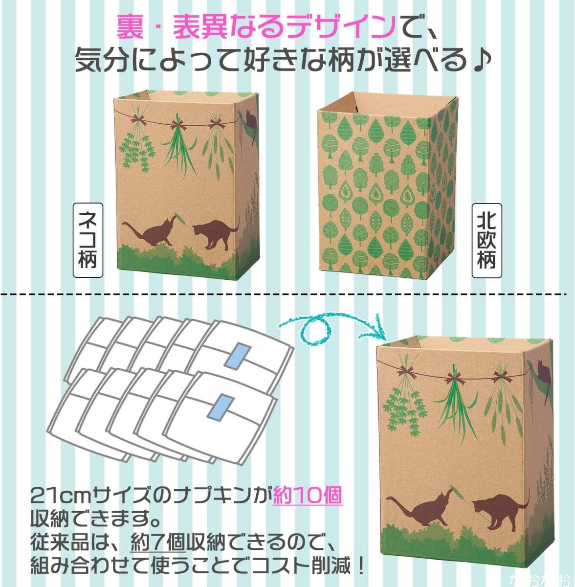 かわいい北欧柄リーフと猫柄の表裏違うデザインなので気分に合わせて使える、使い捨てのエチケットボックス