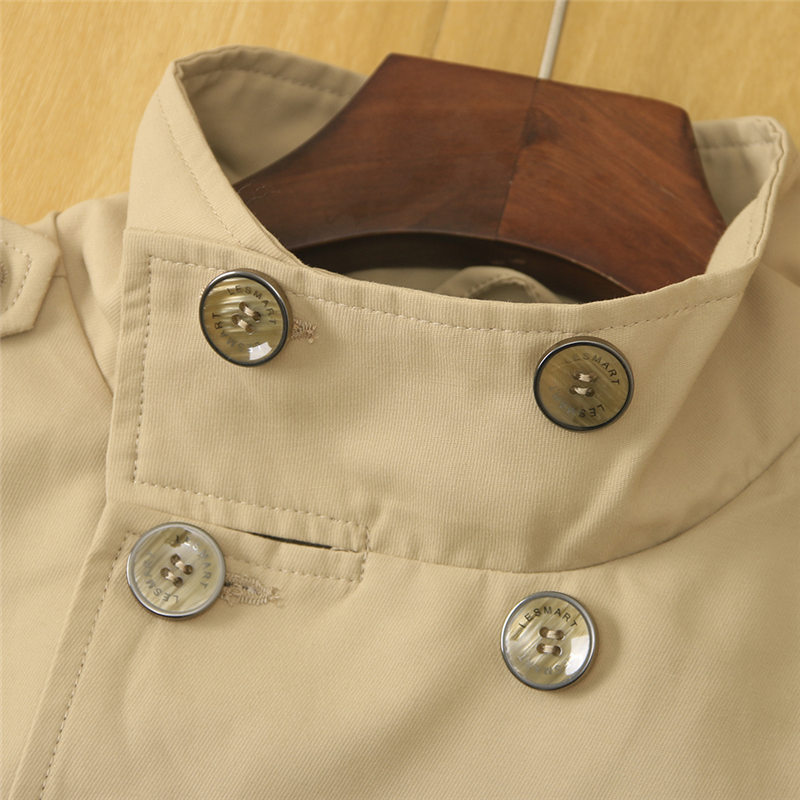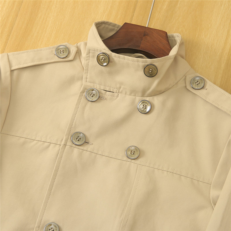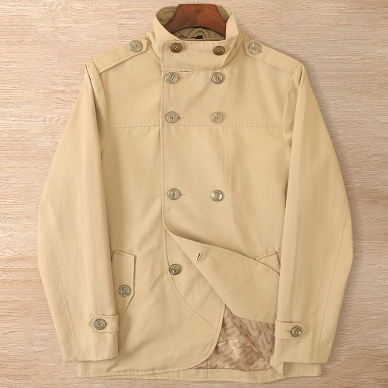 Y6299-M カーキ 新品 ジャケット ショートトレンチコート ダブルボタン スタンドカラー ウォッシュ加工 春秋 メンズ トップス アウター