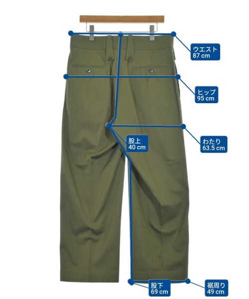 | ウエスト:87cm,裾周り:49cm,ヒップ:95cm,わたり:63.5cm,股上:40cm,股下:69cm |