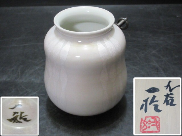 多少の汚れ・こすれあります。 今年の7月に人間国宝に認定された中田一於先生の掛花入です。 釉下彩が美しい一品です。 花入れの高さ約11cm、口径約6.5cmです。 中古品ですので、念のためこすれ・汚れ書いていますが、目立った物は画像に撮っています。 他にも出品していますので、 こちらもご覧ください。 その他画像で判断ください。 古い物ですので、ご理解のある方のご入札をお願いします。 神経質な方のご入札はご遠慮ください。 当方指定の業者にて発送いたします。 定型外郵便・メール便はお取り扱いしておりませんので、ご了承願います。 オークション終了後当方より送料を計算いたしまして、合計金額をご連絡致します。 ※基本的に売り切りですが、希望価格に達しない場合は取り消す事があります。ご了承ください。 |