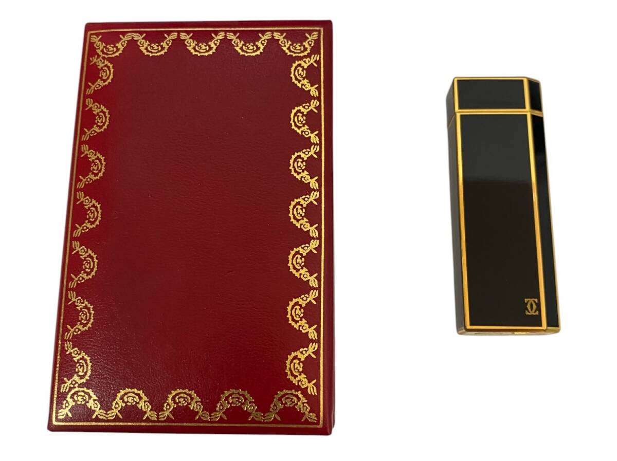 | 商品名 | Cartier カルティエ ガスライター ローラー式 五角形 喫煙具 ブラック×ゴールド 着火あり ケース付き 中古 |