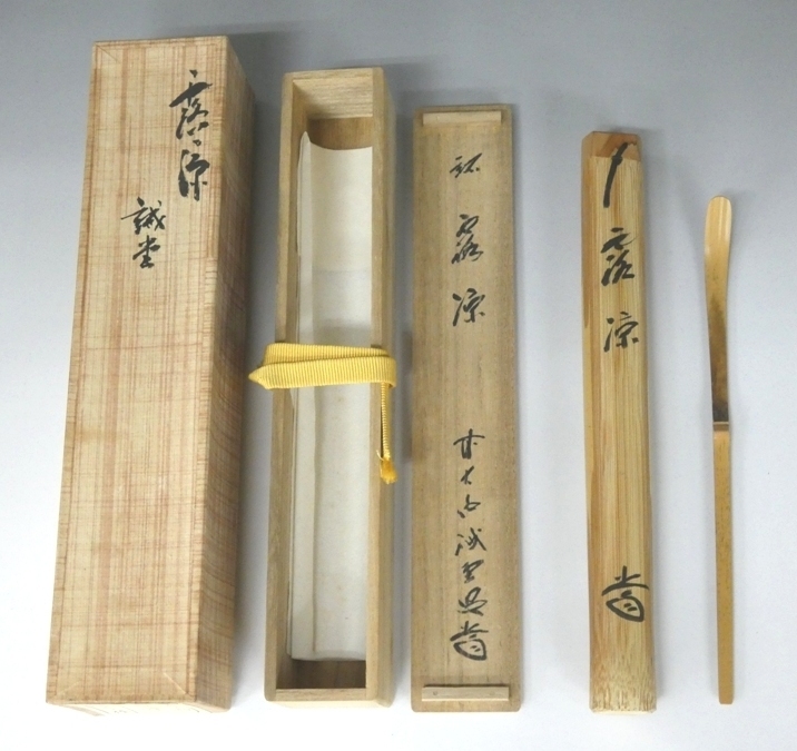 【茶道具名品】 茶杓 大徳寺塔頭 藤井誠堂作 銘入り 書付き 花押 西川楳玄 共箱 紙箱付 茶道家収集品 状態良好品 |