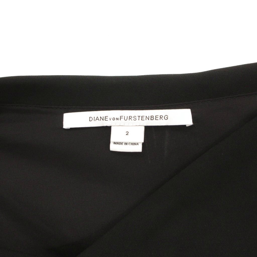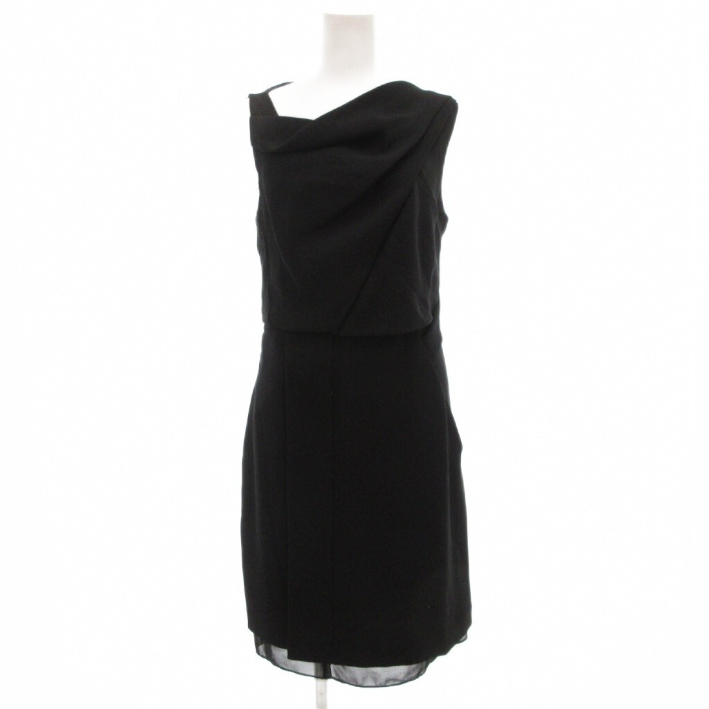 ダイアンフォンファステンバーグ DIANE von FURSTENBERG ノースリーブワンピース ひざ丈 アシメドレープ 2 黒 ブラック /GV
