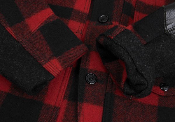 | アイ ジュンヤワタナベ マン コムデギャルソンeYe JUNYA WATANABE MAN COMME des GARCONS ギンガムチェックレザーエルボーパッチジャケット 赤黒S |