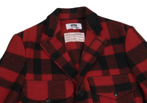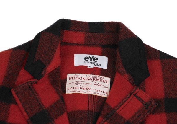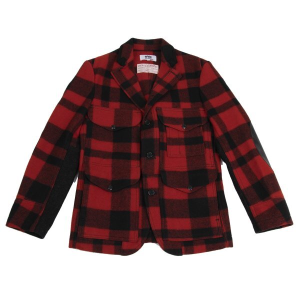 | アイ ジュンヤワタナベ マン コムデギャルソンeYe JUNYA WATANABE MAN COMME des GARCONS ギンガムチェックレザーエルボーパッチジャケット 赤黒S |