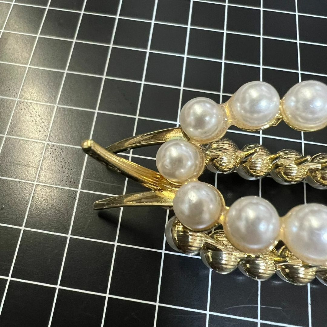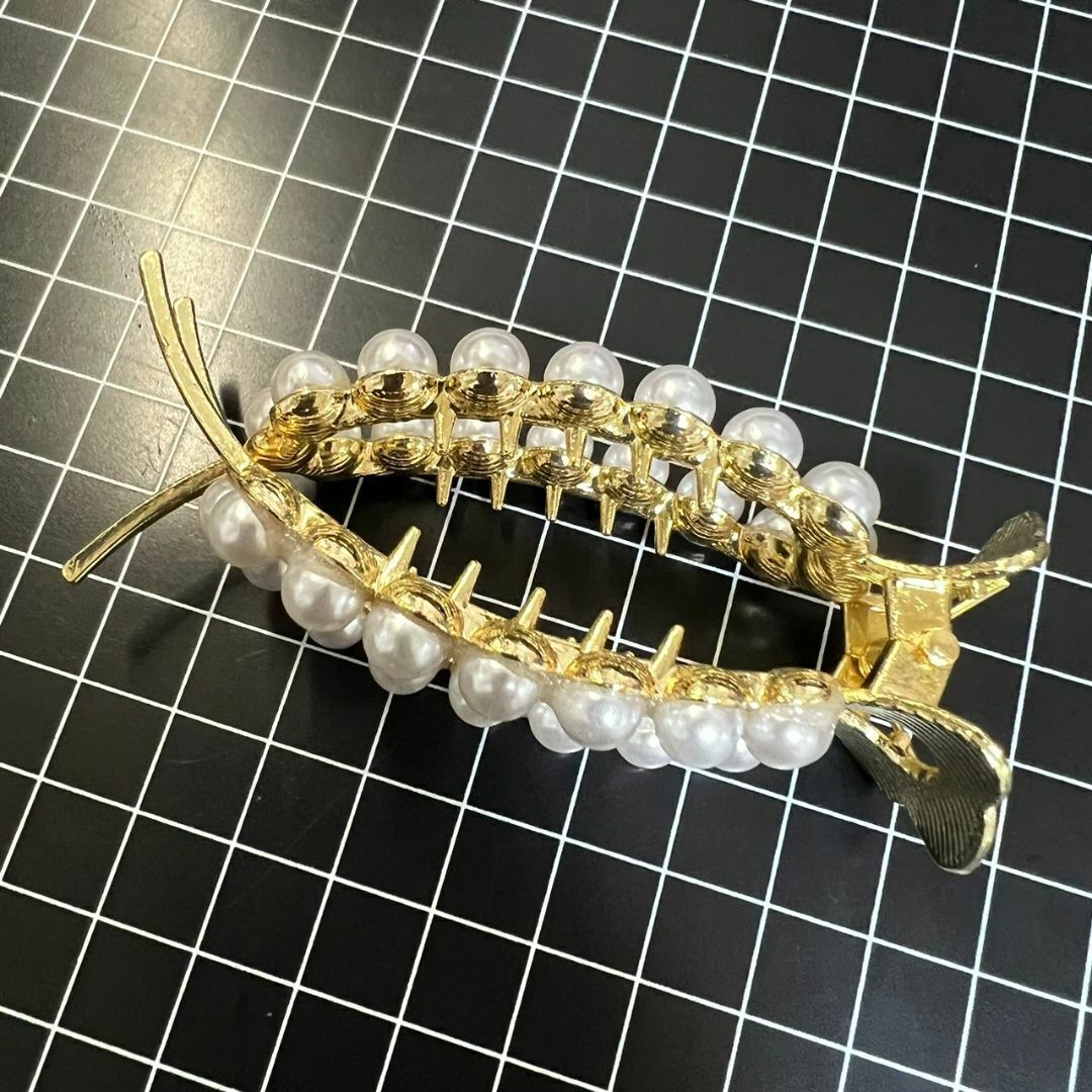 E513 匿名配送 パールポニーテールクリップ お団子クリップ ゴールド ヘアクリップ 髪留め パール ヘアアクセサリー