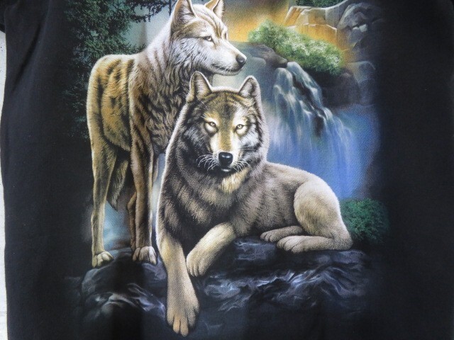 【送料300円可】6280b1◆美品です◆両面プリント◆MR.BIG 狼ウルフ柄 半袖Tシャツ L/ヴィンテージ/カットソー/スウェットトレーナー/古着