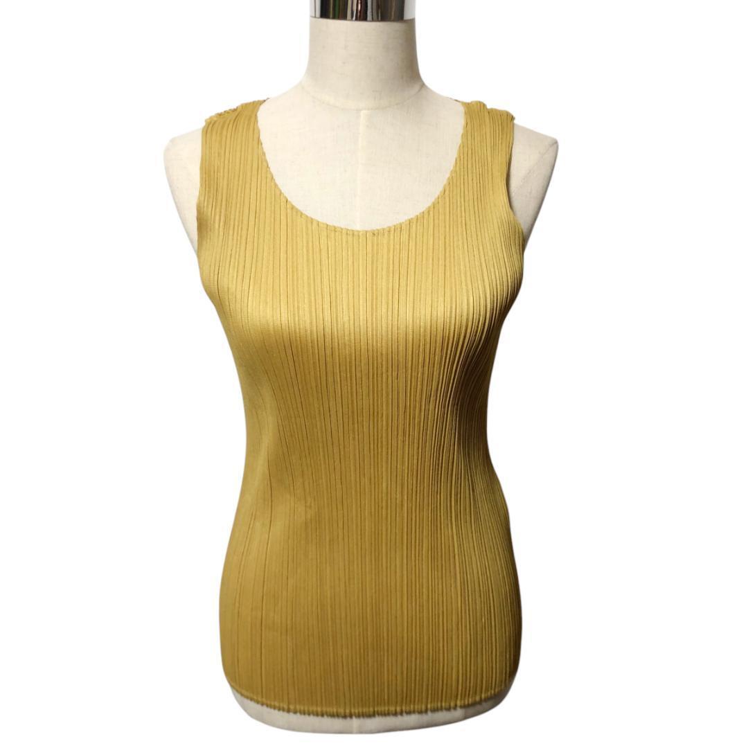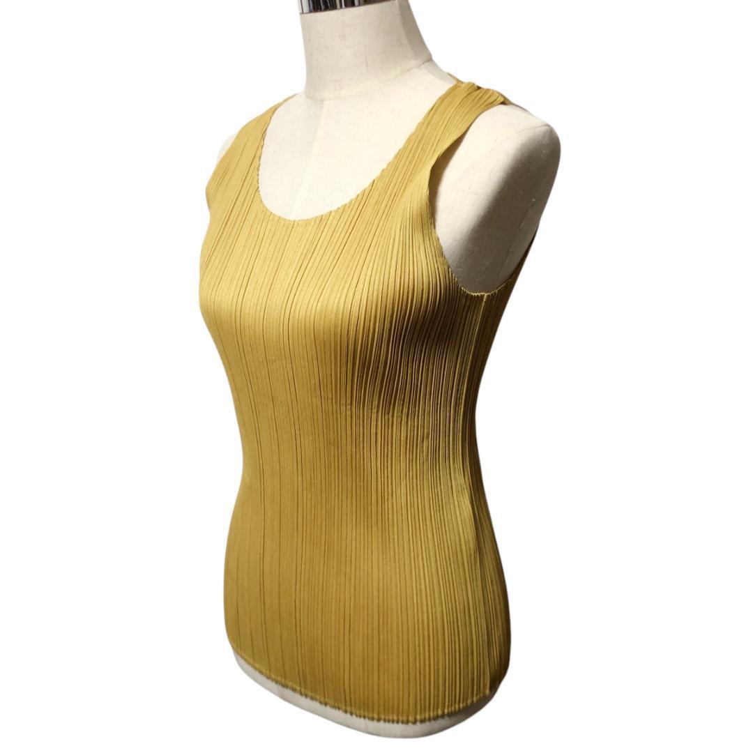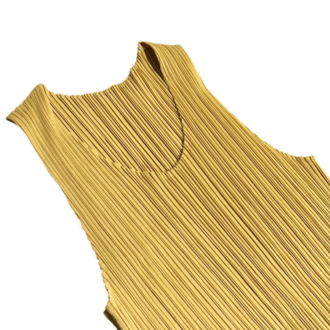 PLEATS PLEASE プリーツプリーズ プリーツ カットソー ノースリーブ F マスタード 日本製 イッセイミヤケ レディース M5