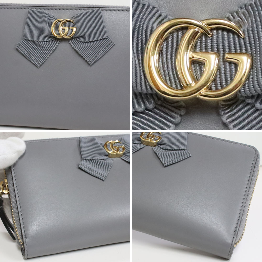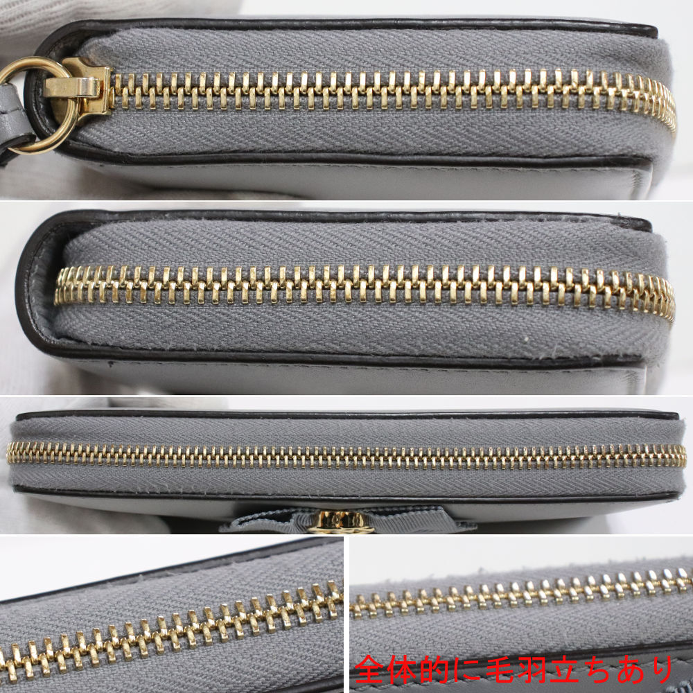 グッチのプチマーモントのラウンドファスナー長財布、レザージップアラウンドウォレット(435819 DLXWJ 1765)の中古品です。 日本限定のお品物です。GGロゴにリボンがとても可愛らしいです。 ファスナーキャンバスに毛羽立ち、メッキ全体に剥げがみられます。 内側のレザーにファスナー金具の押し跡があります。 多少の使用感はありますが、大きなダメージのない状態の良いお品物です。