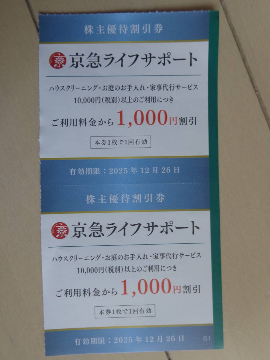 京急ライフサポート 1,000円割引×2枚○京浜急行電鉄 株主優待券○2025年12月31日まで 京急 ハウスクリーニング 家事代行サービス