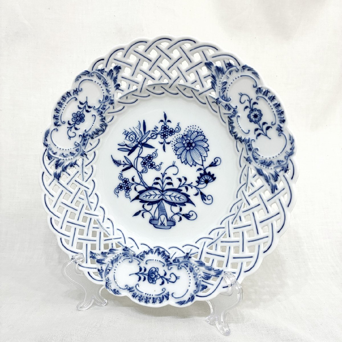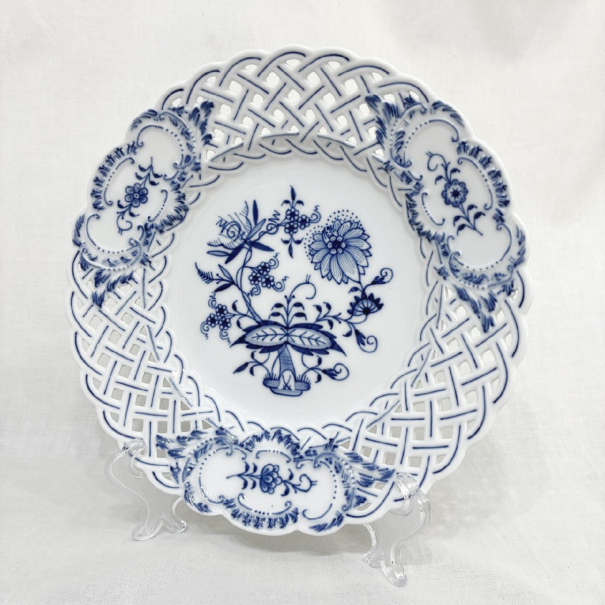 meissen 21cm ブルーオニオン オープンワークプレート お皿 マイセン J8-152