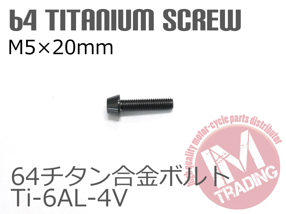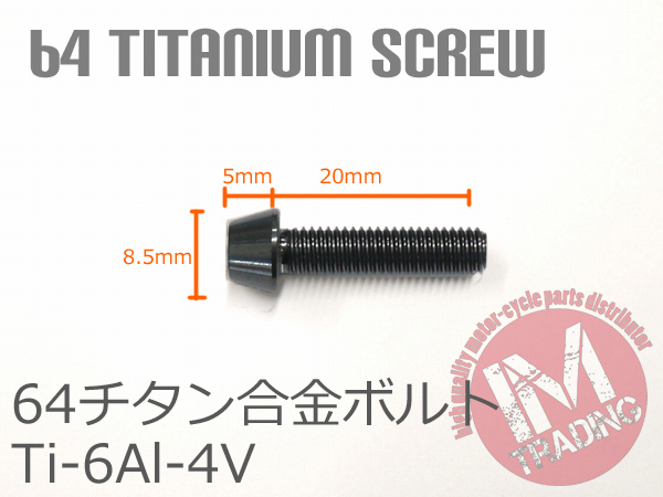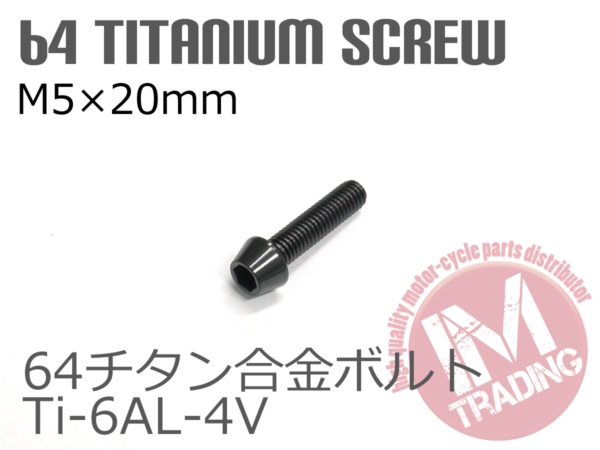 64チタン合金ボルト M5×20mm P0.8 6本セット テーパーキャップ ゆうパケット対応 ブラック 黒 Ti-6Al-4V