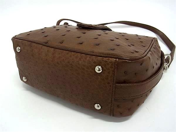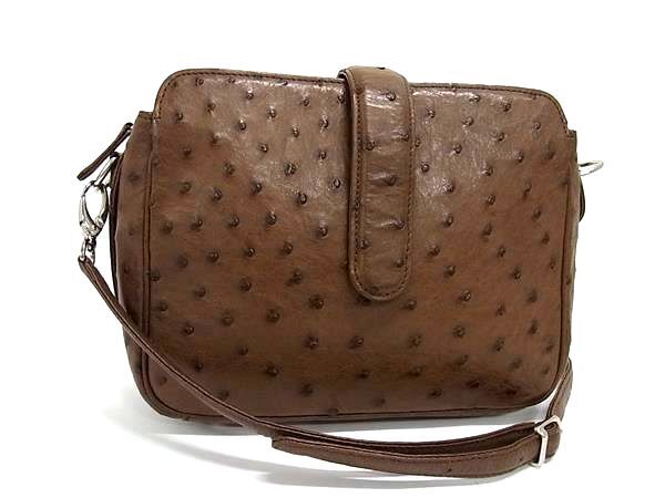 1円 ■極上■本物■美品■ MARIONA マリオナ オーストリッチ クロスボディ ショルダーバッグ 斜め掛けかばん ブラウン系 BQ0565
